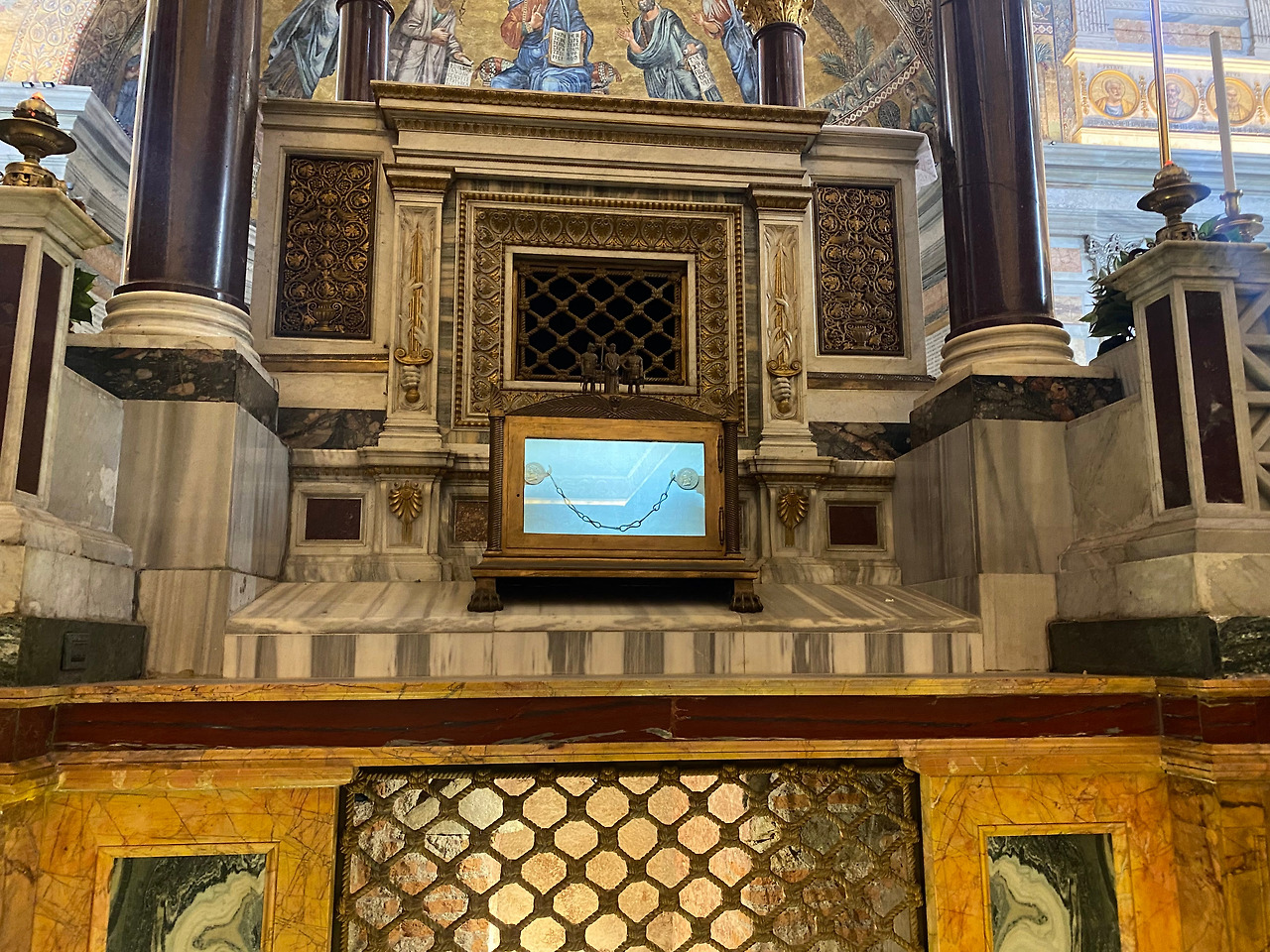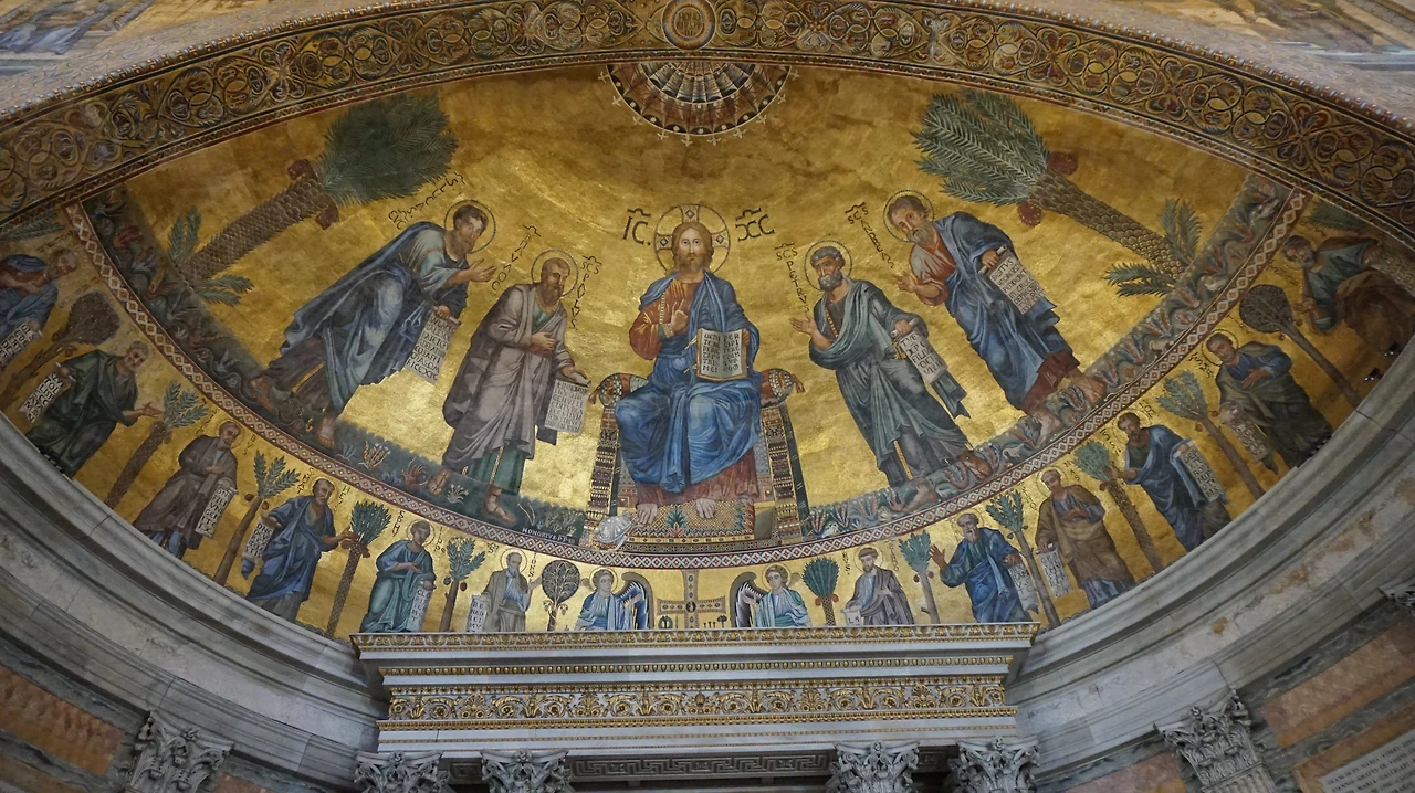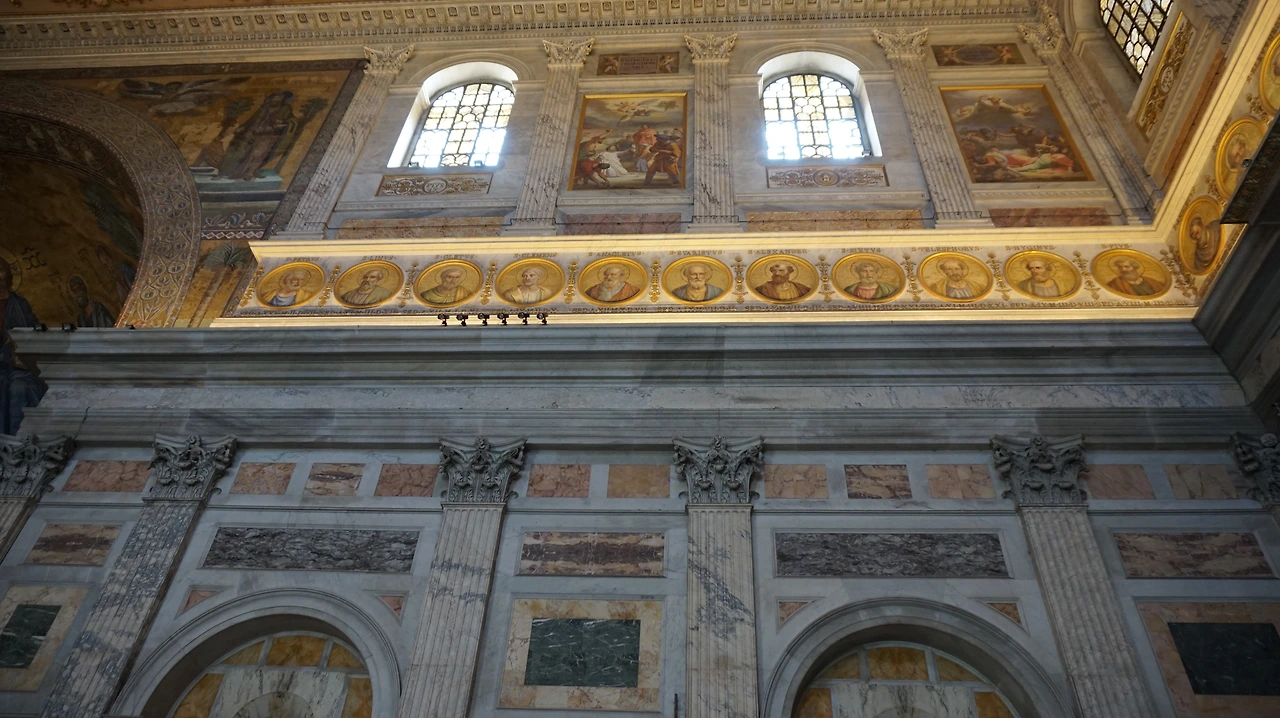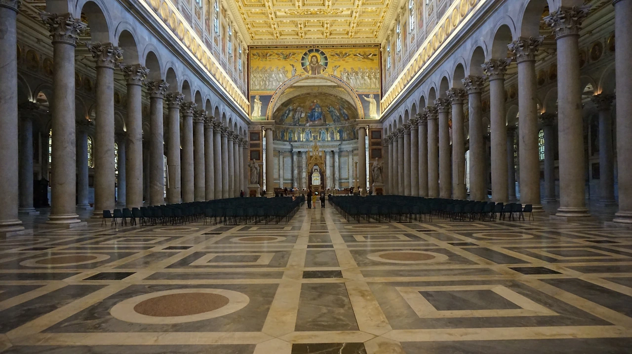 이 성당에서 가장 인상적이었던 것은 정확한 대칭을 이루고 있는 직사각형의 공간 구조였다. 물론 엄청나게 높고 넓은 성당의 규모는 말할 것도 없고, 양쪽 가장자리에 늘어서 있는 거대한 기둥들의 행렬과 그 옆으로 보이던 회랑도 눈길을 끌었다. 유럽의 성당들에서 익숙하게 만날 수 있는 기둥, 회랑과 별개로 돔형이 아닌 직선의 천장면을 시작으로 이어지는 완벽한 직사각형의 구조는 마치 현대의 컨벤션 센터 같은 공간을 연상케 했다. 그리고, 제대 위 돔형 천장에는 예수와 베드로, 바오로, 안드레아, 루카 성인의 초상화 및 12 사도의 초상화로 구성되어 있는 천장화가 눈길을 끌었는데 고딕양식이나 바로크 양식이 아닌 마치 고대 로마 그리스 시대의 신전을 연상케 하는 성당이라 더욱 인상적이었던 듯하다. 물론, 이 성당도 어마무시하게 화려한 장식과 성화, 유물 등으로 가득 차 있는데 다음날 만나게 될 성 베드로 대성당과는 비교가 되지 않는 정도였다.