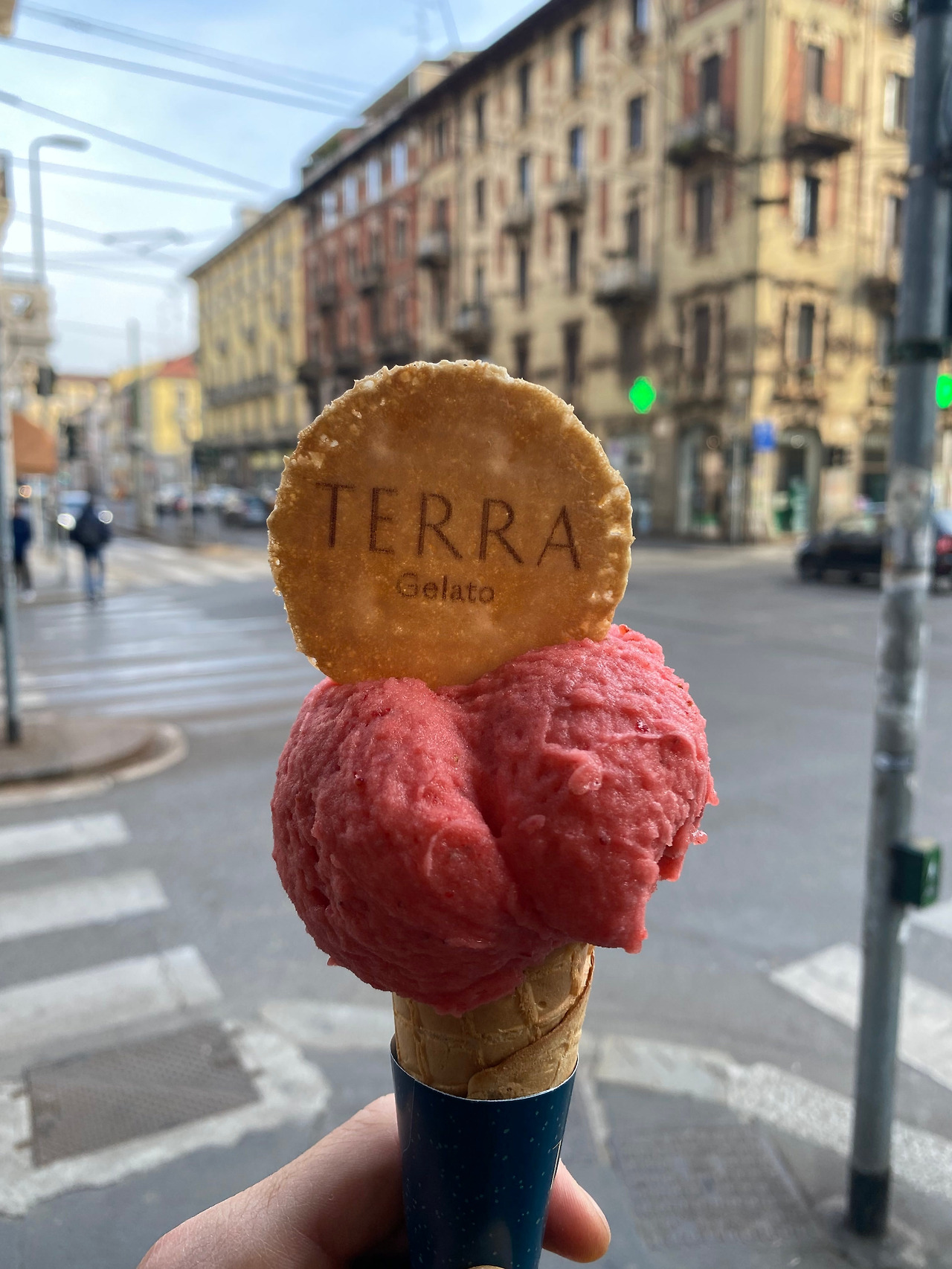 늘 하던 대로 주변 슈퍼에 들러 물 한 병을 사고 숙소로 돌아가던 중 젤라토 가게가 눈에 들어왔다. 이탈리아 하면 젤라토 아니겠는가. 둘이서 달콤한 젤라토를 하나씩 사서 맛을 보니 이탈리아까지의 기나긴 여정으로 인한 피로가 사르르 녹아드는 듯했다. 지금 돌이켜보니 우리가 처음 맛본 이탈리아 음식은 달콤하고 상큼한 젤라토였네.