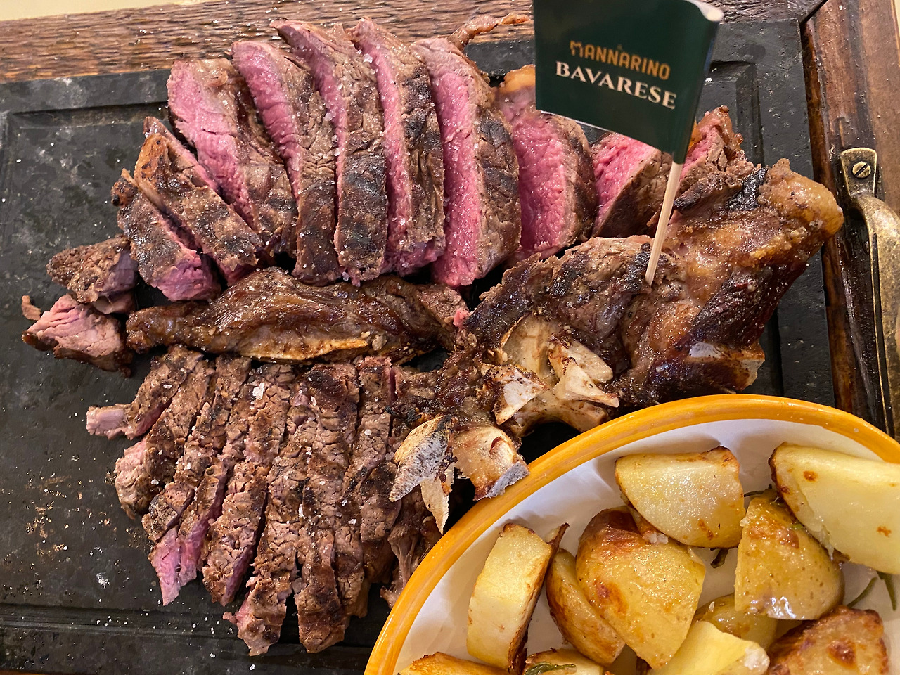 이 식당은 마치 한국의 정육식당 같은 시스템인데, 식당 전면에 자리 잡고 있는 쇼케이스에서 고기부위와 양을 고른 후 주문을 하고 테이블에 앉으면 조리해서 가져다주는 시스템이다. 쇼케이스의 고기들에 적혀있는 판독불가한 이탈리아어 때문에 난항을 예상했었으나 다행스럽게도 영어로 소통 가능한 담당 직원 덕에 무사히 주문을 했다.(유럽이나 미주에 오면 항상 느끼는 거지만 고깃값이 싸고 양도 많다. 여기도 기본 주문이 500g, 2인분이면 1kg을 기준으로 하는 듯했는데, 우린 Hong의 컨디션이 약간 저하된 관계로 티본스테이크 500g과 샐러드를 함께 시켜 먹었는데 그것도 만만치 않은 양이었다.) 하우스 와인과 함께 테이블에 서빙된 음식들은 기대를 저버리지 않았다. 적당히 구워져 한입에 제대로 된 풍미를 맛볼 수 있었던 티본스테이크는 육즙을 가득 품고 있었고 레드로 주문한 하우스 와인은 고급지진 않았지만 함께 한 음식들과 훌륭한 궁합을 만들어주었다. 특히, 스테이크의 경우 별다른 스테이크 소스 같은 건 내어오지 않았고, 가장 기본적인 양념인 소금, 후추, 올리브오일 정도와 함께 오로지 불의 힘과 신선한 고기로 승부를 보는 맛이었다. 어디선가 봤던 남부유럽 국가들의 원재료에 대한 개입을 최소화하는 요리방식을 제대로 경험한 셈이다. 이렇게 만족스러웠던 첫 번째 저녁식사를 시작으로 이후 이탈리아에서 만난 음식들은 나에게 '맛있다'는 단어에 대한 정의를 다시 내려주었다 할 수 있을 만큼 모두 인상적이고 만족스러웠고, 나의 먹방 여정 포텐이 제대로 터지게 된다.