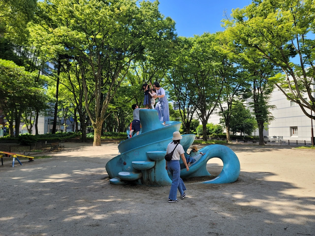 전기쟁이 출신인 남편은 전기과학관에 가보고 싶다고 한다. 어린이 과학관을 찍고 전기과학관도 슬 둘러보자 싶어 걸어갔으나 오픈시간까지 살짝 여유가 있어 근처 놀이터를 찾았다. 그러나 곧 알게 되었다. 놀이터를 온다는 것은 다른 일정을 대체해야 한다는