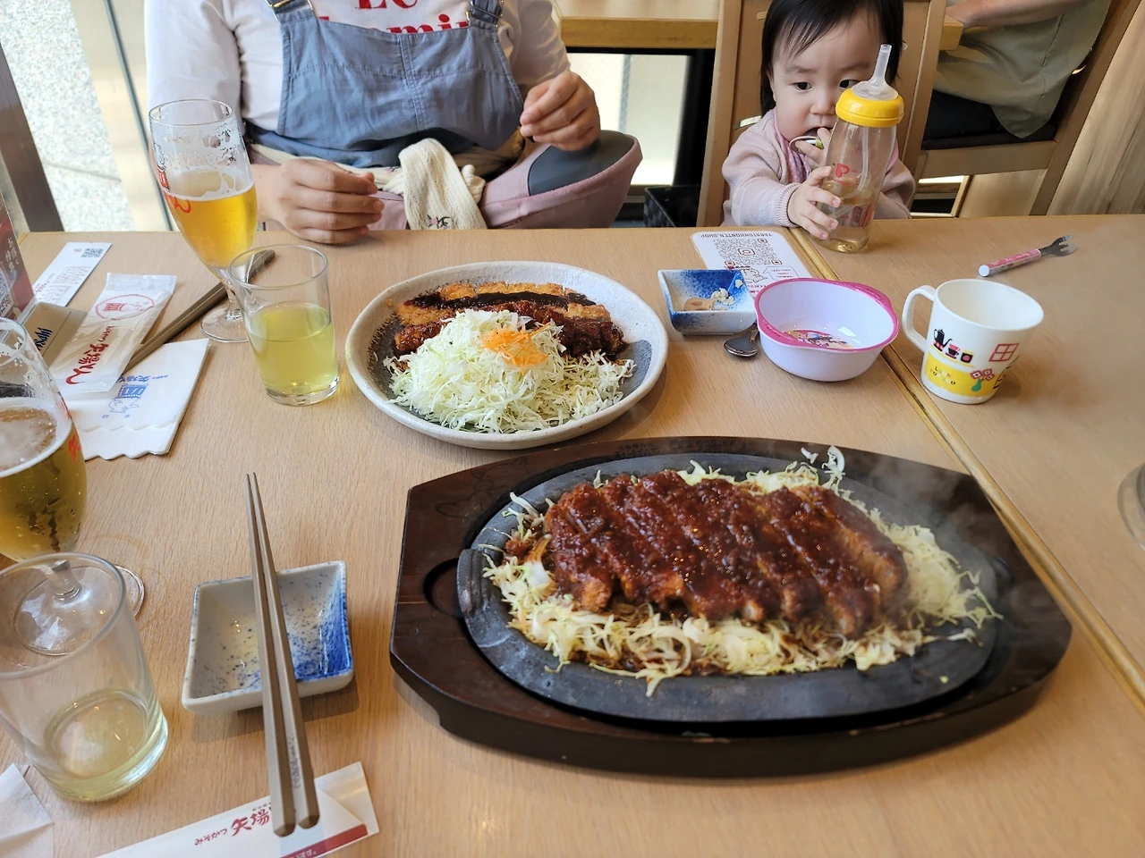 일본인 부모들이 다 쳐다볼 정도로 격하게 논 뒤.. 제일 마지막으로 놀이터를 나왔다. 그냥 아점이나 먹으러 가자.. 무슨 전통상점가거리들을 지나지나.. 예약해 둔 된장 돈까스 집을 찾았다. 11시 오픈이라 여유있게 10:50쯤 왔는데도 열댓명 정도 줄을 서 있다. 예약확인도 안하는 걸 보니 그다지 의미가 없나 싶었다.