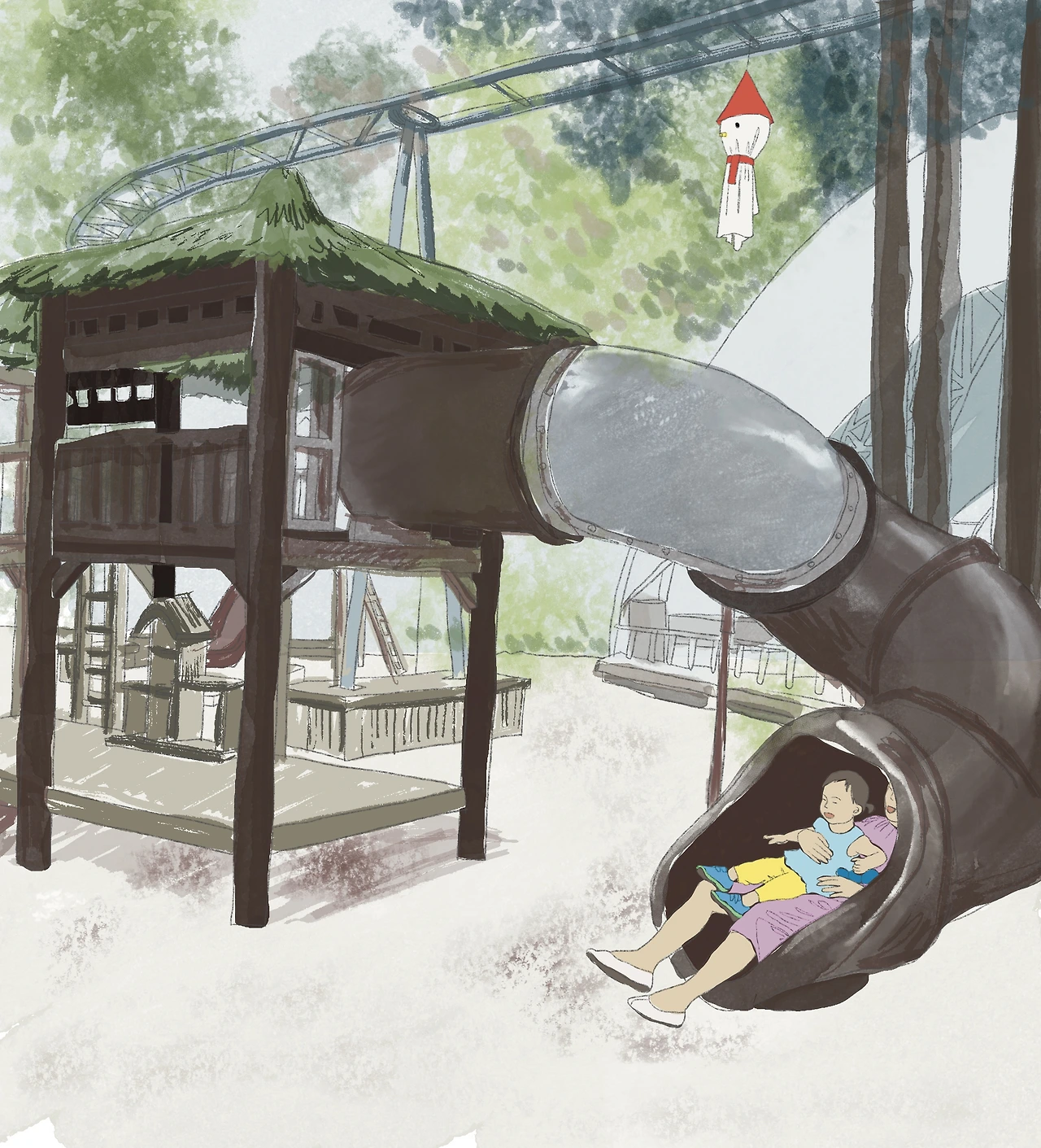 이미 가평양떼목장(이라고 쓰고 사계절 썰매 맛집이라 부른다)에서 체력을 다 소진했는데도 따님께서는 이곳에서도 놀이터 투어를 했다. 그냥 혼자 미끄럼틀 타게 둬도 된다는데 쫄보맘은 아직도 큰 미끄럼틀은 같이 탄다. 도대체 무슨 일인지 만삭때보다 살이 더 쪄 있는 몸뚱아리 덕에 통미끄럼틀 가운데 낄 뻔 했다.