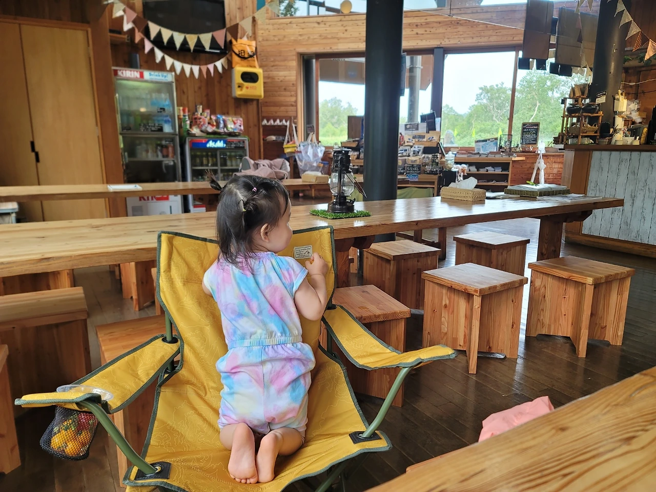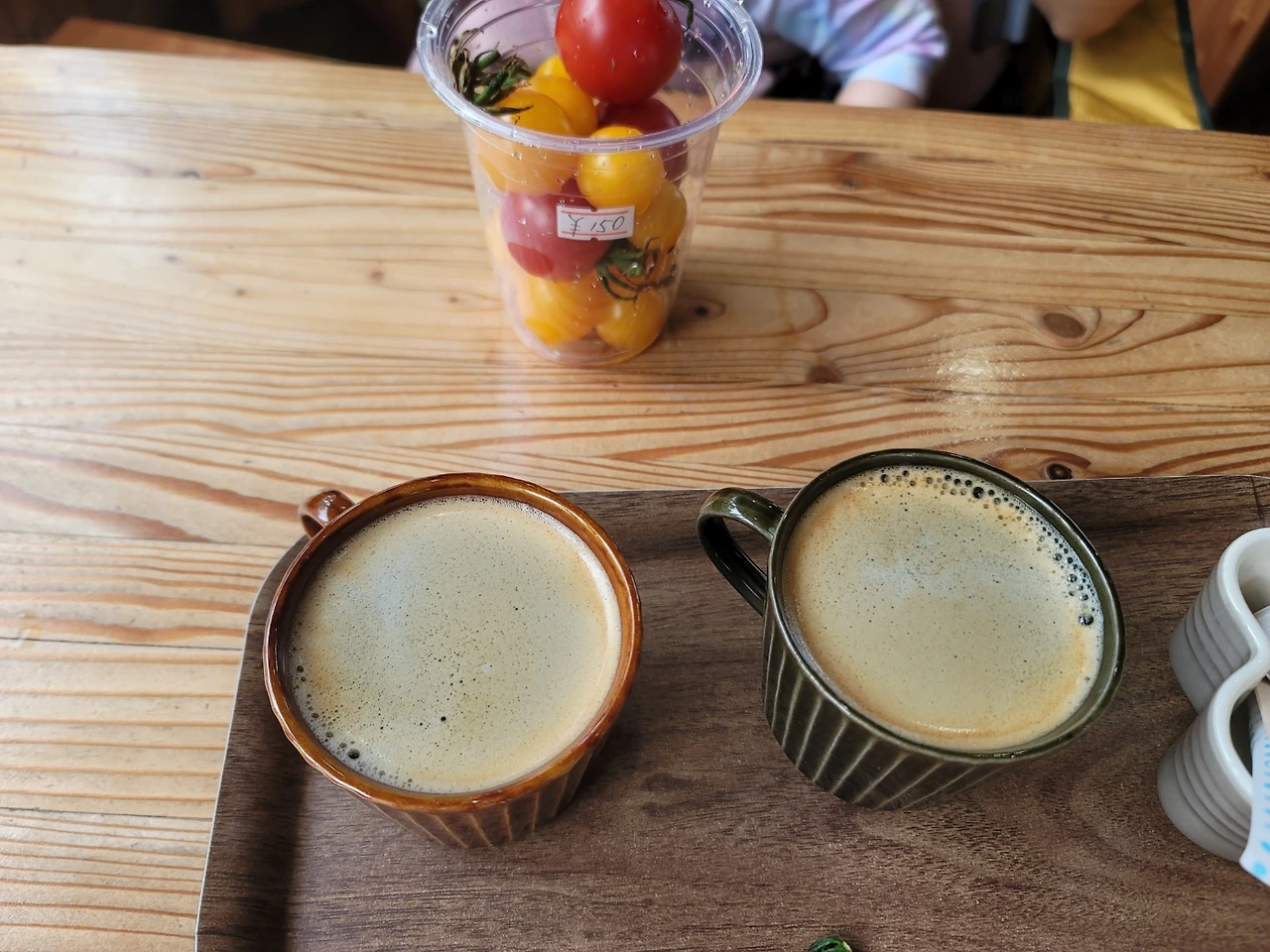 신센누마 입구 맞은편 휴게소 주차장에 도착해서 일단 차 한잔 하며 비를 피하기로 했다. 휴게소는 마치 산장처럼 생겼고 실내는 아기자기한 여러 간식과 물품들을 팔았고 별도로 아기 기저귀 가는 방이 별도로 마련되어 있을 정도로 깔끔한 곳이었다. 남편과 나는 커피를 한잔씩 마시고 아기에겐 방울 토마토를 사주기로 했는데 주인분께서 직접 깨끗이 씻어 주셨다. 요즘 스테비아 토마토를 가끔 먹게 되는데 그 토마토에 버금갈만큼 달콤한 토마토였다.