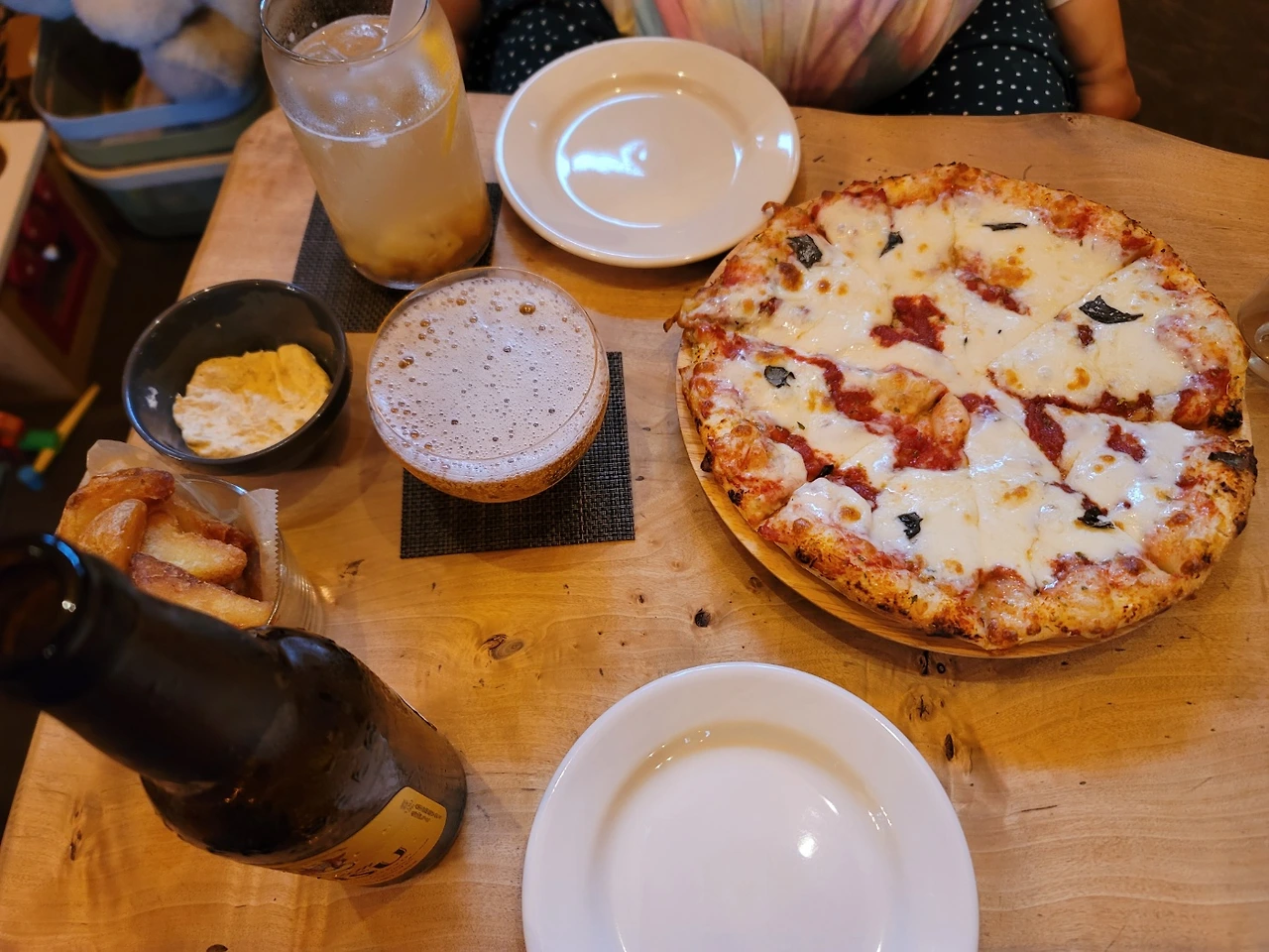 중간에 피자집에 들러 피자 한 판 했는데 남편은 일본까지 와서 피자라며 역시 일본은 피자지 라고 비꼰다. 이곳에는 원래 아기들 놀이터도 있는 곳이라 선택한 곳이었는데 비오니 이도저도 의미가 없다.