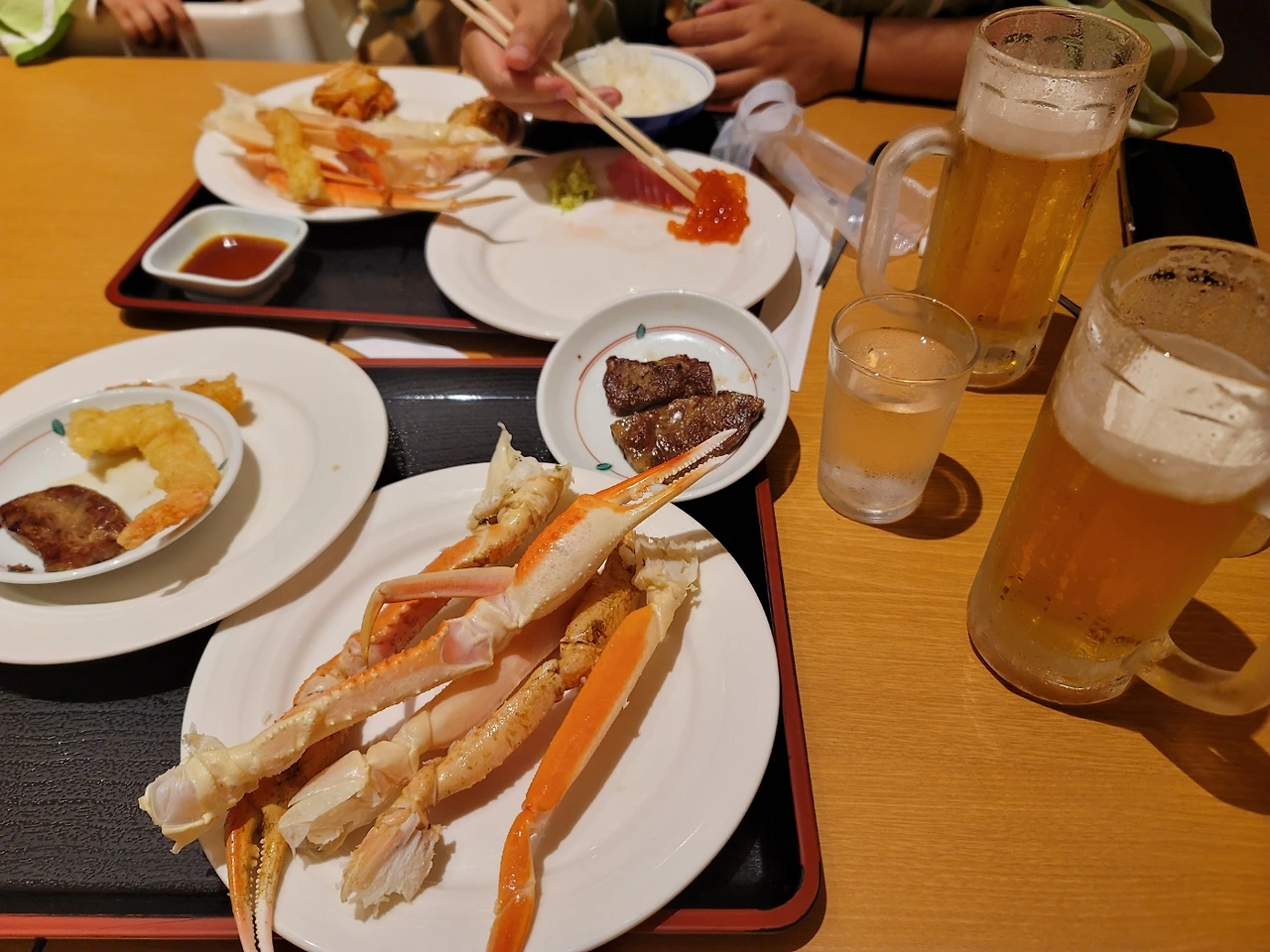 입장하자마자 게를 보러 갔는데 어라 이게 털게가 맞나? 생김새가 그냥 대게 같다. 게는 싱싱해서 살이 쏙쏙 빠져나왔지만 차갑게 보관한 것이 영 입에 맞지 않아 다른 것들에 도전했다. 의외로 회가 하나하나 다 맛이 있었고 평소 잘 먹지 않던 연어알이 신선하고 맛있어서 두 번 가져다 먹다 마지막엔 돈부리 형식으로 떠먹기도 했다. 기대보다는 부페 음식의 가지수가 많지는 않았고 아이를 데리고 있으니 마음대로 둘러보지를 못해 조금 아쉬운 마음이었다.