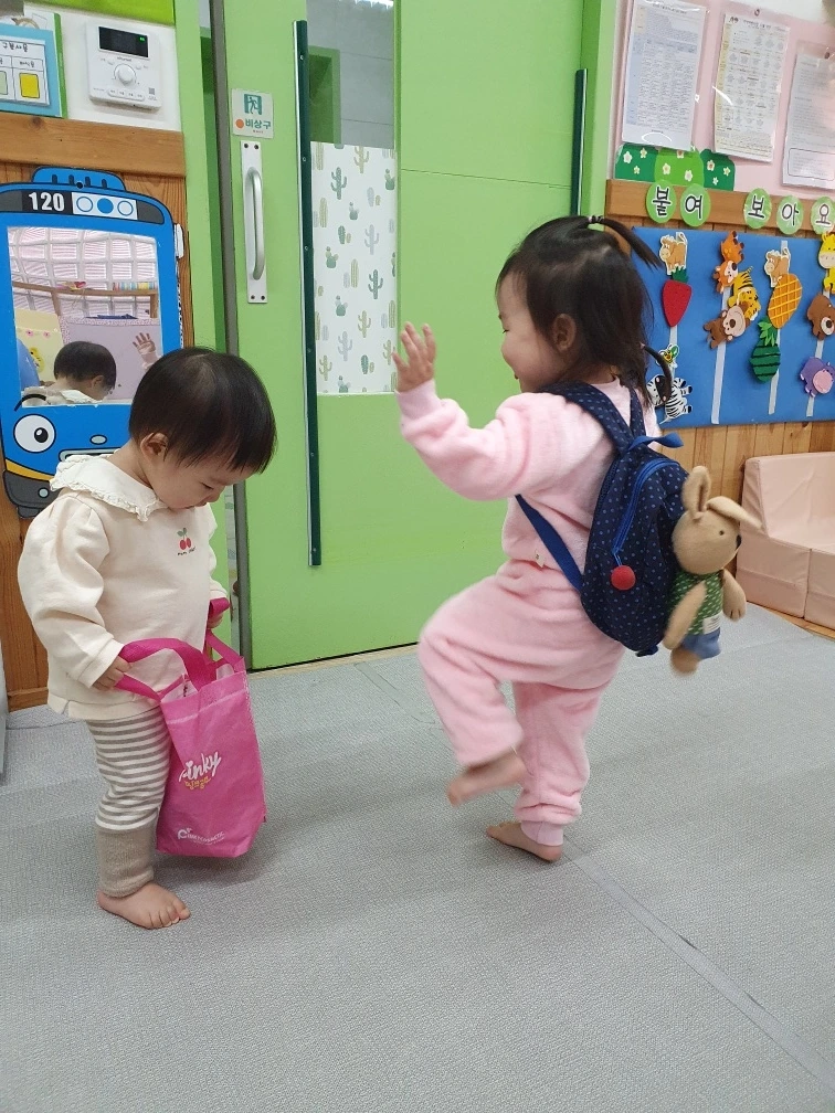 아기는 단짝이 생겼다. 얼집 문열고 등원하고 문닫고 하원하는 것을 당연하게 여기던 아기가 요즘은 단짝이 하원하면 그렇게 서럽게 운다고 한다.