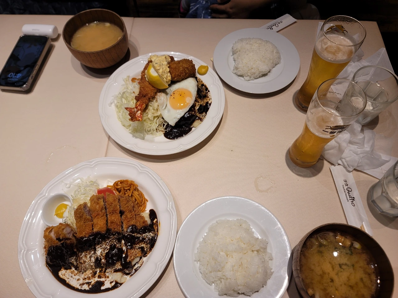 나도 피로가 쌓여 뭘 하겠다는 의지가 없었고 단지 생맥주를 들이키고 싶다는 생각만 간절해서 적당한 음식점을 찾아 나섰다. 구글 평점이 높은 곳은 그 어딜가나 대기가 기본 30분이었고 성질급한 우리 가족은 또 줄안서는 곳을 찾다 쌩뚱맞게 함박스테이크를 먹게 되었다.