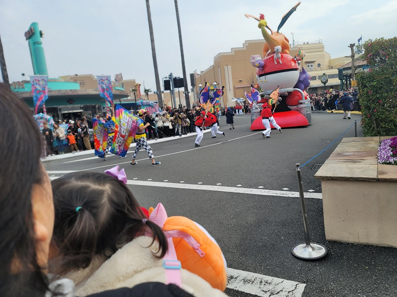 조금 시간을 때우다 보니 드디어 퍼레이드가 시작된다. 시작 30분 전부터 퍼레이드를 관람하려는 인파들로 자리경쟁이 시작되었다. 비가 와서 퍼레이드 규모가 조금 축소된 것 같기는 했지만 그래도 그 반복적으로 흘러나오는 신나는 음악에 나도 몸이 들썩여졌고 아기띠로 아기를 안고 있는 상황에서도 함께 춤을 췄더니 남편이 체력 정말 대단하다고 혀를 내두른다. 왜 살은 안빠지나?