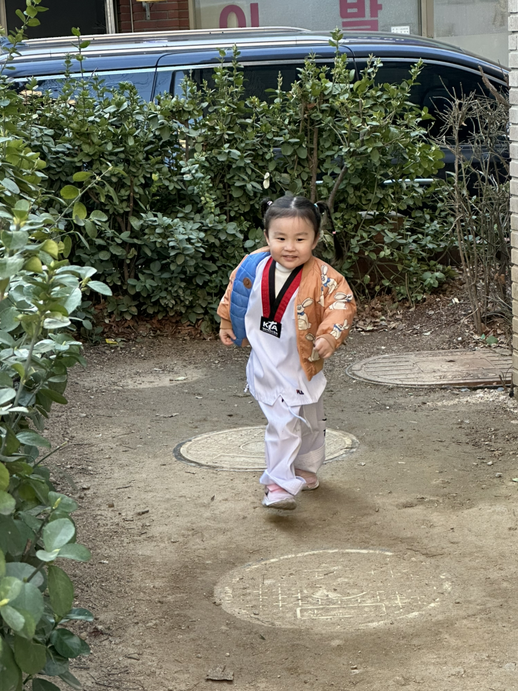 태권도 끝나고 바로 놀이터로 뛰쳐가서 최소 한시간은 열정적으로 놀아야 집에 들어오니 그와중에 체력은 좋아서 더 다행이다. 말이 5살이지 11월생 이제 겨우 41개월에 접어드는 아기라 학원에서 최연소라 언니 오빠들의 귀여움을 독차지한다. 놀이터에서도 이제 아기를 알아보는 같은 태권도장에 다니는 언니 오빠들이 제법 생겼다.