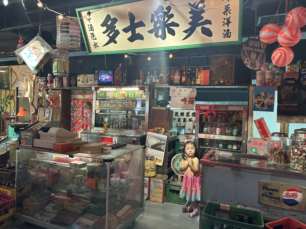 스카이테라스에 올라 한참 사진도 찍고 풍경도 구경했다. 나름 피크라 좀 선선하려나 싶었지만 산 위에 구름이 걸쳐 있을 정도의 높이였는데도 후덥지근한건 매한가지다. 잠시 휴식을 취하고 티켓에 포함되어 있던 메이록 체험이라는 곳을 방문했다. 예전에는 못 본 것 같은 곳이고 건물의 모퉁이를 활용해 자그맣게 옛날의 홍콩의 생활상을 전시해 놓은, 일반 관광객에게는 큰 흥미거리를 불러일으키지 못할 것 같은 곳이었는데 아이는 왜 그렇게 이 곳을 좋아하는지 안 둘러봤으면 큰일날 뻔 했다. 아이는 이발소에서 미용사 역할극도 하고, 학교에서 선생님 역할극도 하고, 화장대 앞에서 화장하는 척도 하며 이곳에서만 한시간 가량 시간을 보낸 것 같다. 관광객도 굳이 이곳까지 들어오지 않아서 전세낸 기분으로 시원하고 여유롭게 둘러보았다.