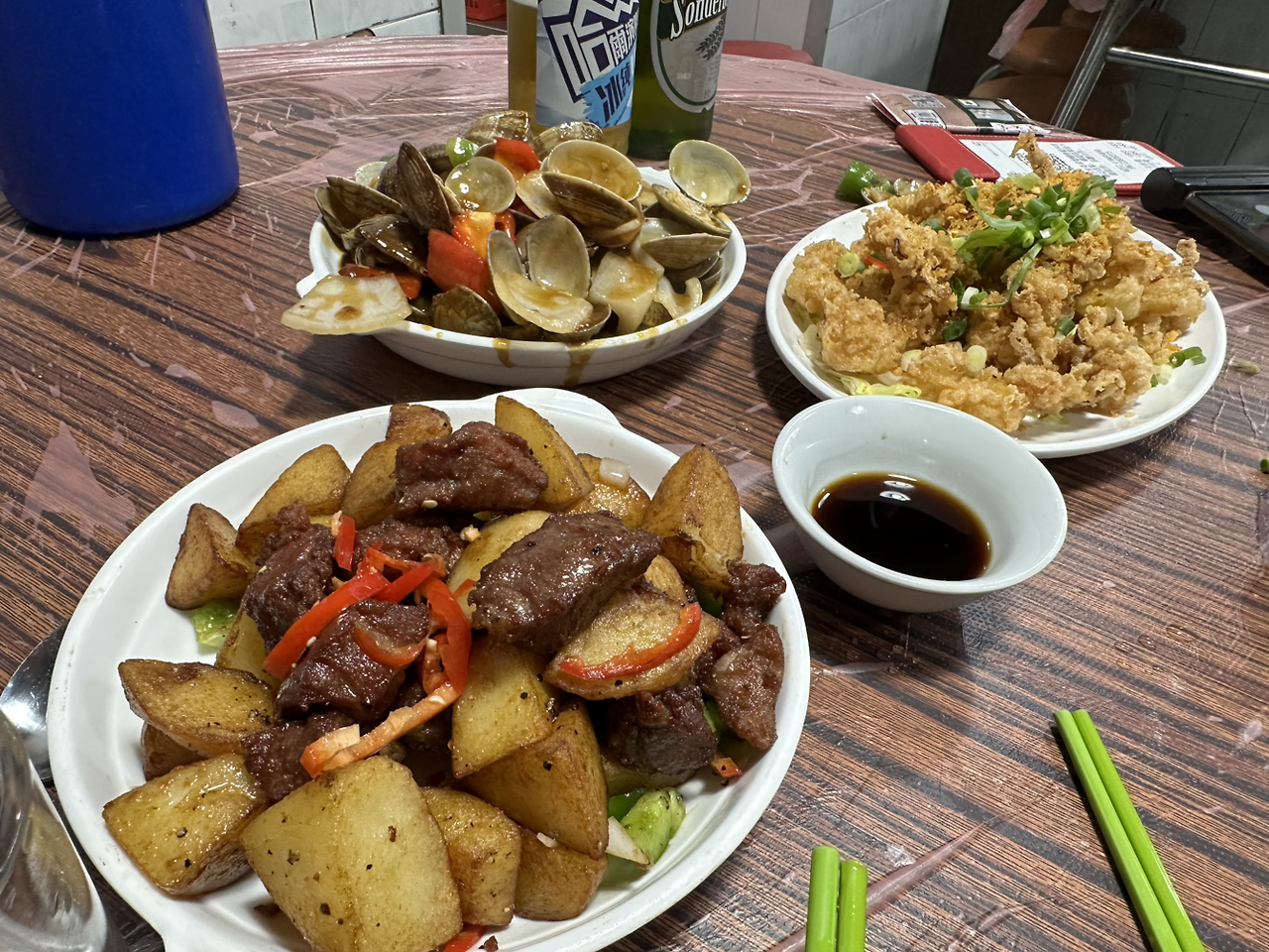침사추이에 도착해서 버스를 갈아타고 백종원이 스트리트푸드파이터 홍콩편에 간 음식점 중 하나인 애문생이란 식당으로 향했다. 중심가에서 살짝 떨어져 있어서 관광할만한 요소가 없기 때문에 오로지 이곳만을 위해 이 동네를 와야 한다. 버스에 내려 바로 코너를 꺾으니 큰 간판으로 애문생 글자가 보인다. 홍콩에서도 대단하게 소문난 곳인지 촬영을 하느라 바쁘다. 식당 안으로 들어가니 젠슨황도 왔던 맛집이다. 기대감에 마음이 설레기 시작했다. 구글리뷰어들이 알려주는대로 소고기 감자 볶음과 조개볶음, 볶음밥을 시켰다. 맛은 살짝 짰지만 워낙 내가 좀 짜게 먹어서인지 내 입맛에는 잘 맞았고 맥주도둑처럼 맥주가 술술 들어갔다.
