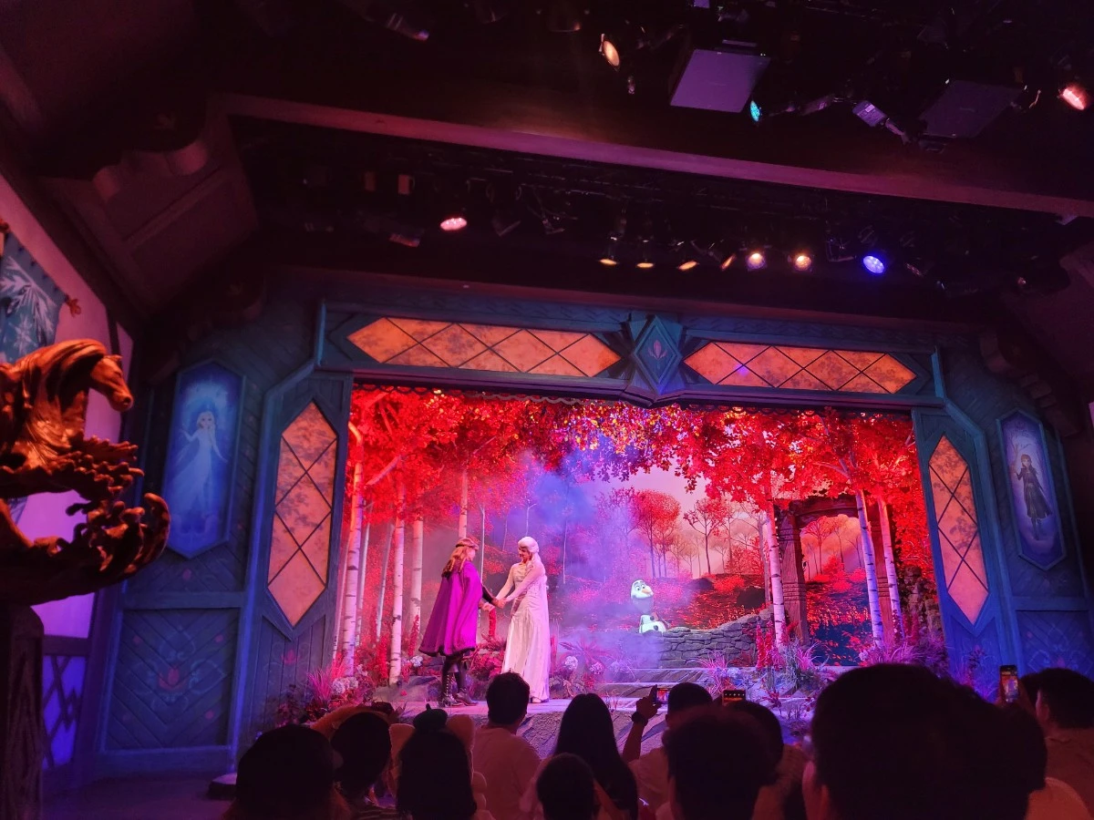 World of Frozen의 Playhouse in the Woods는 정말 예약이 너무너무 어려웠다. 현장에서 핸드폰으로 접속을 해야 했는데 예약 시간때마다 접속자 수가 많으니 자꾸 오류가 나고 예약이 실패했다. 겨우 낮 3시 경으로 예약에 성공했는데 나중에 보니 현장 직원들에게 부탁하는 사람들이 대부분이더라. 오후가 되니 사람들이 꽤 몰려오기 시작했다. 여름의 디즈니랜드는 정말 말리고 싶지만 혹시나 나처럼 선택권이 없었던 분들이 계시다면 꼭 디즈니랜드 옆의 호텔에서 숙박하면서 early entrance로 일찍 어트랙션을 최대한 많이 이용하고 1시가 넘어가면 호텔로 돌아가 식사도 하고 호텔 내에서 수영도 하고 낮잠도 자고 쉬다가 5~6시쯤 나오는 것을 추천한다. 그렇게 해도 어트랙션은 거의 탈 수 있을 것 같다는 생각이다. 2일권을 예약해서 오전에 왔다가 오후에 나가고 다음날에는 오후에 와서 밤까지 구경하는 관광객도 많다고 하니 그것 또한 방법이다.