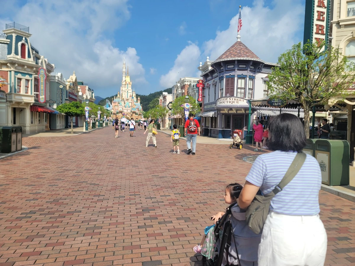 택시정차장에 내려 주위를 두리번 거렸는데 생각보다 사람이 많지가 않다. 인파를 따라 들어갔더니 디즈니 직원 입장통로여서 다시 안내를 받아 들어갔다. 9시부터 입장인데 9:01에 도착했으니 이미 다들 들어갔을 수도 있다. 마음이 급해진 우리는 전속력으로 달렸다. 오늘따라 해는 왜이렇게 쨍쨍한지 이때부터 땀으로 옷이 다 젖었고 체력을 반쯤 소진한 것 같다.