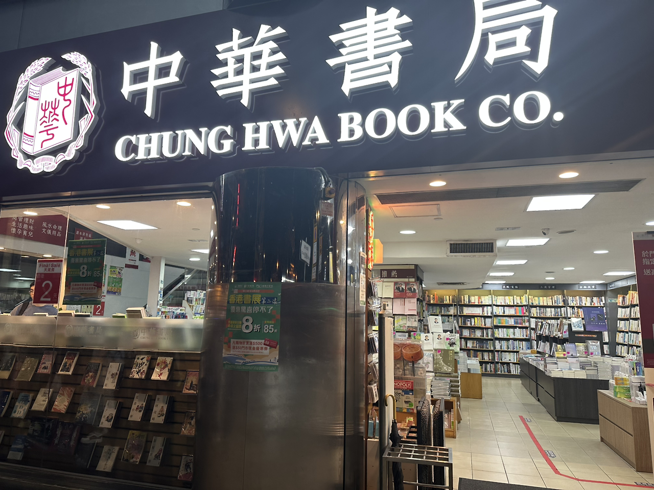 화방 미술용품 코너는 시간이 늦어 문을 닫았고 학용품을 팔기에 학창시절에나 보았던 pilot 수성 화이트를 샀다. 학용품들도 대부분 일제이고 가격은 일본의 1.5~2배 정도 비싸다. 가까운 일본에서 더 싸게 살 수 있는 물건들을 비싼 가격에 사려니 아까운 마음이 밀려온다. 화이트와 벽지 느낌의 미색테이프 하나를 사서 밤거리를 걸어오는데 조금 앞에 서점이 보인다. 중국어도 홍콩어도 심지어 한자도 까막눈이지만 그래도 서점의 분위기가 좋아 홀린 듯 서점을 향했다. 최근에는 정말 책이라고는 손에 잡은 적이 거의 없다 싶을 정도지만 그래도 아직 나는 책을 참 좋아한다. 책 내용보다도 책 자체를 더 좋아하는 것 같다. 한자가 가득한 책을 살 수는 없어 아쉬운 마음이었는데 마침 예쁜 마그네틱을 팔고 있다. 홍콩을 한자로 쓴 분홍색의 고급진 마그네틱이라 핑크병에 걸린 아기도 좋아하겠다.