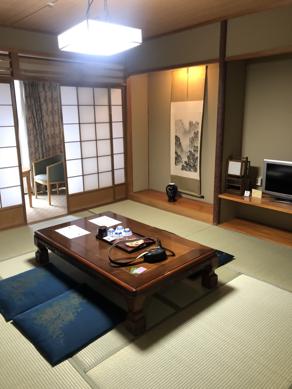 버스정류장에서 멀지 않은 숙소는 외양에서부터 꽤나 오래된 느낌이 물씬 풍겨왔다. 얼마 전까지 회원제로 이용가능하던 곳이었는데 최근에 일반 숙박객도 받게 되었다고 들었다. 아마도 한국인은 우리 가족이 전부인 듯 했다. 영어도 한국어도 통하지 않아 나의 짧은 생존일어와 남편의 빠른 눈칫밥으로 무사히 체크인을 마쳤다. 방은 넓고 깨끗한 다다미방이다. 노천온천과 대중탕을 모두 보유하고 있어 잽싸게 노천탕을 먼저 다녀왔다.