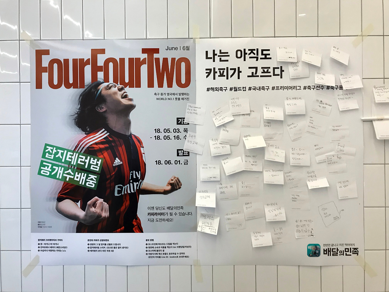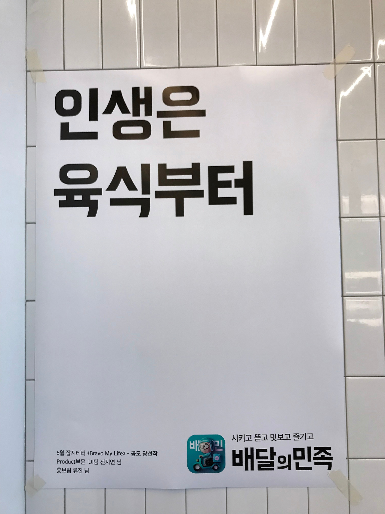 배민의 사업 첫 해, 대한민국에서 마케팅이나 홍보, 디자인 등을 업으로 삼고 있는 사람들은 충격적인 장면을 목도했다. 굵은 매직으로 눌러쓴 듯한 폰트로 잡지 한 면에 천연덕스럽게 자리 잡은 광고 시안 때문이다.