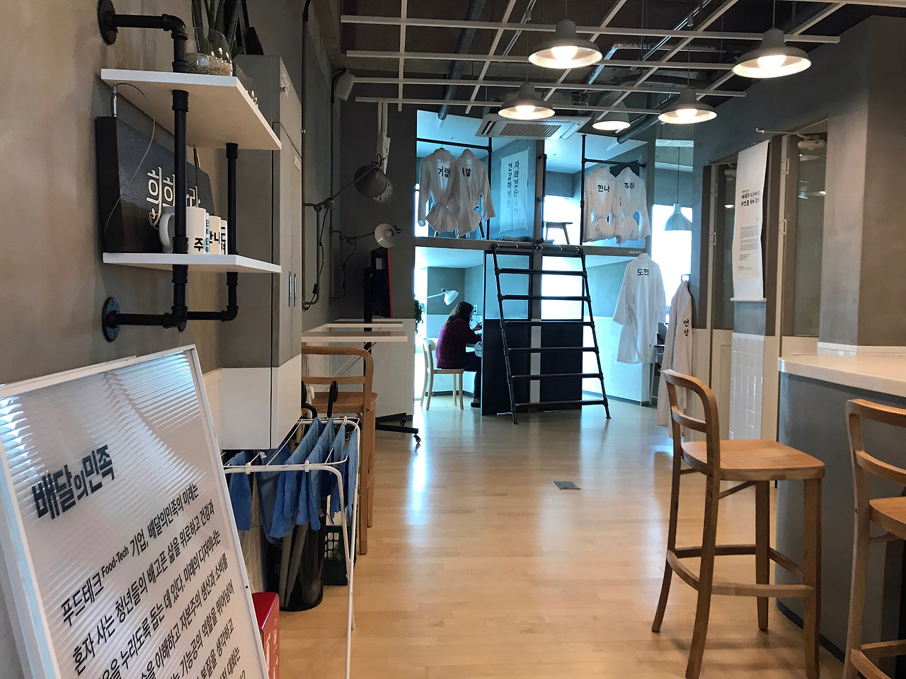 로비와 면접 대기 공간, 리셉션 등 외부인이 배민을 처음 접하는 곳에는 집요하리만치 '먹을 것'이라는 업의 본질을 테마로 한 이야기거리를 비치해 두었다.