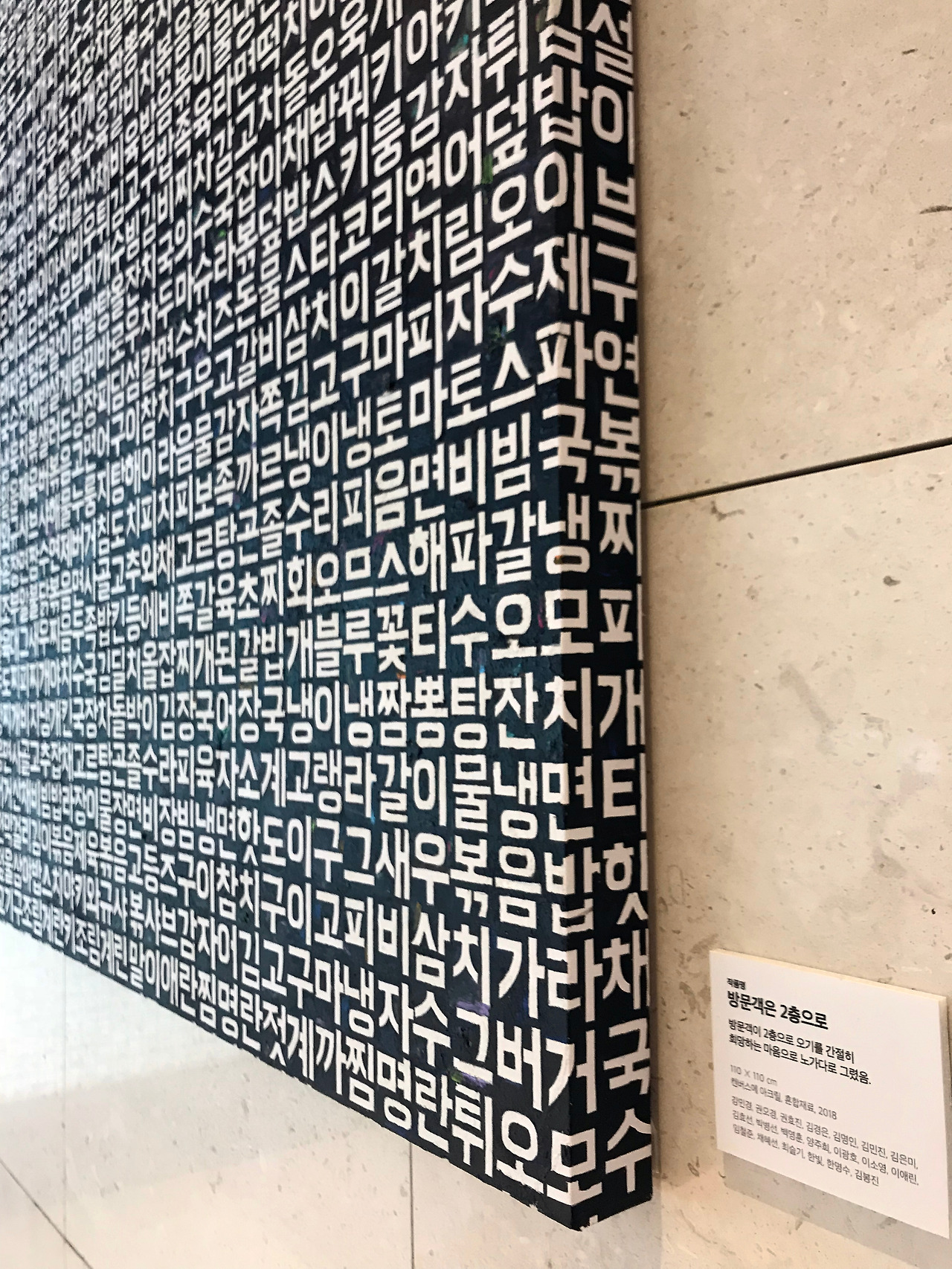 우선 고유의 폰트가 친근하다. 한나체·주아체·도현체·연성체·기랑해랑체 등 5종의 공식 폰트들은 오래된 것이나 흔한 것들에서 영감을 얻어 제작됐다. 자연히 거부감이 덜하다. 글을 적는 방식은 담백하다. 미사여구가 없고 주술 관계가 명확하다. 약간 촌스러운 행색이지만 깨끗하게 세탁해 빳빳하게 다림질 한 옷을 입은 청년이 또박또박 말하는 느낌이랄까? 모든 층에서 이런 느낌을 받을 수 있었다.