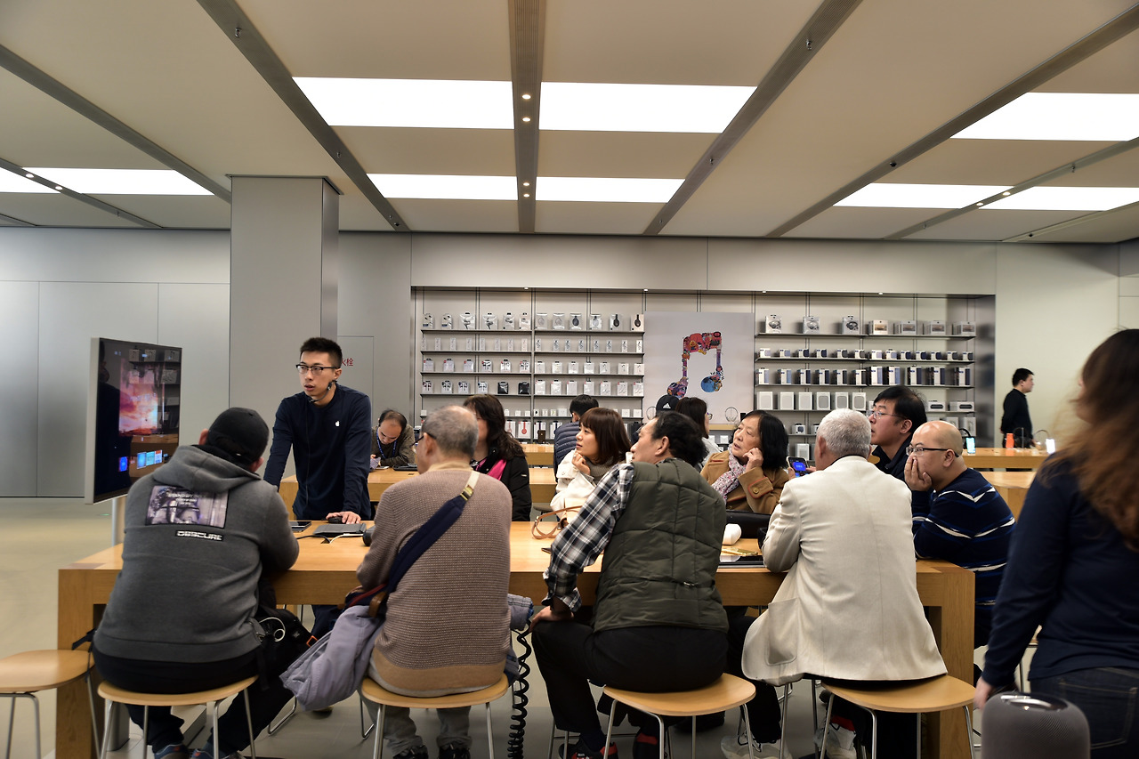 퓨전 음식을 내놓는 오하 이터리(Oha eatery), 금주법 시대를 콘셉트로 한 오초 스피크 로우 바(Speak Low Bar)에서는 상당한 수준의 감각을 엿볼 수 있었다. 해외 문물에 밝은 젊은 인구들의 절대적 숫자가 많은 만큼 요소요소에서 새로움과 감각이 싹트고 있다. 무엇보다 눈길을 끌었던 것은 애플샵의 노인들이다. 우리나라의 애플샵이나 프리스비 등 판매점을 가보면 젊은 층 일색인데, 상해에선 그렇지 않았다. 교육 테이블에 둘러앉아 강사의 말에 귀기울이며 맞장구치는 10여 명의 사람들 중 절반이 노년층이었다. PC에서 윈도우 OS 경험을 하지 않고 모바일 시대로 직진한 사람들이 많아서일까? 그것만이 이유는 아닐 테다. 상대적으로 고가인 애플 기기를 쉽게 구입할 만한 고소득 노년층도 충분하다는 방증일 테고, ‘나는 늙어서 컴퓨터 같은 거 못해’라는 고정관념에서 자유로운 사람도 많다는 거 아닐까.