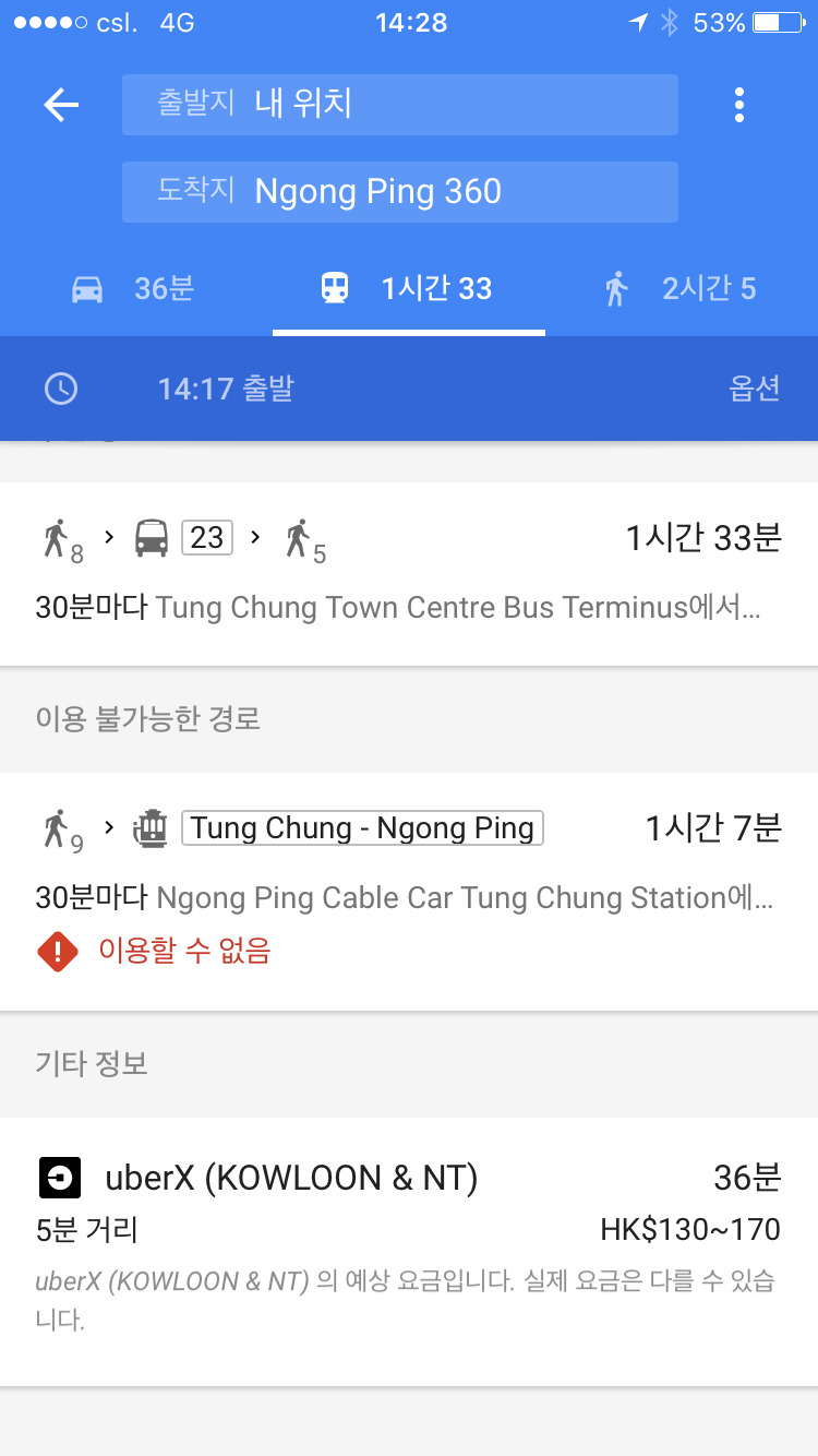 업무상 이동이 많은 나는 진작 우버 앱을 설치했지만, 서울에서도 특정지역에만 차량이 편중되어 있어서 배차가 원활치 않아 이용해 볼 기회가 없었다. 그러던 중 지난 3월 17일 부터 20일까지 홍콩을 여행하면서 처음으로 제대로 이용해 볼 수 있었다.