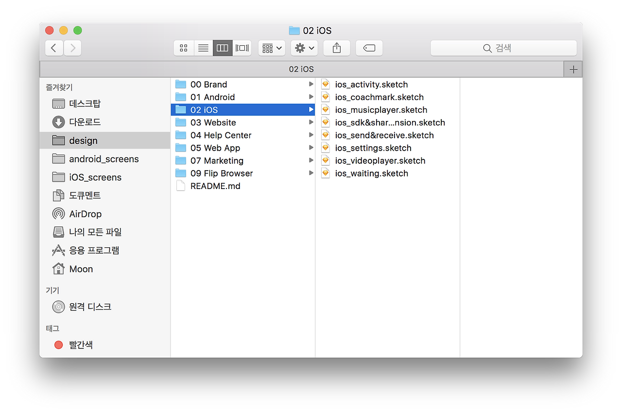 모든 제품들을 순차적으로 리뉴얼하면서 제품 하나당 스케치 파일 하나인 적이 있었다. 그러나 Git을 도입하면서 각 제품을 플로우별로 나누는 작업을 하고 있다. 다음과 같은 세 가지 이유가 있다.