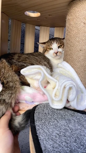 중성화 수술을 받고 집으로 오기 전에 쉼터에서 며칠 더 대기하는 동안에도 예민한 람쥐의 행동은 계속되었다. 몸부림치다가 수술 부위에서 피가 나기도 하고, 밥을 챙겨주시는 무겐님께 삐진 얼굴로 하악을 시전하고, 격리장을 가린 담요를 조금 걷어 두니 구석에 더욱 몸을 숨기고. 한마음으로 응원하던 팬분들 중에는 왕초보 집사가 과연 야생성이 강한 성묘인 '람쥐'를 다룰 수 있을까 하는 우려의 목소리도 나왔다. 나도 가죽 장갑을 구매한 마당이니, 어떤 마음에서 걱정해주신 것인지 이해가 갔다.