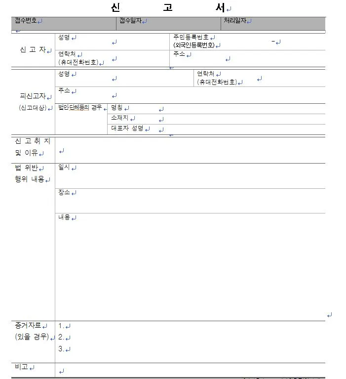 신고서 작성은 까다롭지 않았다. 민원을 넣으면서 한 차례 사건을 정리했던 터라 빠르게 칸을 채워나갔다. 피신고자에 대한 정보는 알 수 없었기에 성명을 'OO기업 면접관'으로 기재하고 소재지와 연락처를 네이버에서 찾아 적었다.