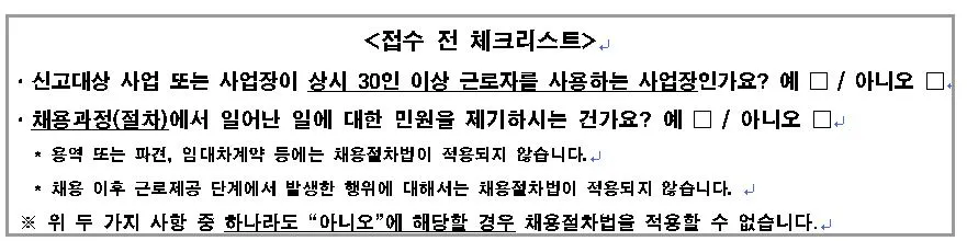 신고대상 사업 또는 사업장이 상시 30인 이상 근로자를 사용하는 사업장이 아닌 경우, 또 용역이나 파견, 임대차계약인 경우, 채용 이후 근로제공 단계에서 발생한 행위에 대해서는 채용절차법이 적용되지 않는다는 것이다. 민원을 넣기 전에는 몰랐던 사실이지만 다행히 모든 경우에 해당해 신고서를 작성할 수 있었다. 언젠가는 이러한 제한 없이 모든 사람들이 존중받으며 일자리를 구할 수 있었으면 좋겠다는 바람이 생겼다.