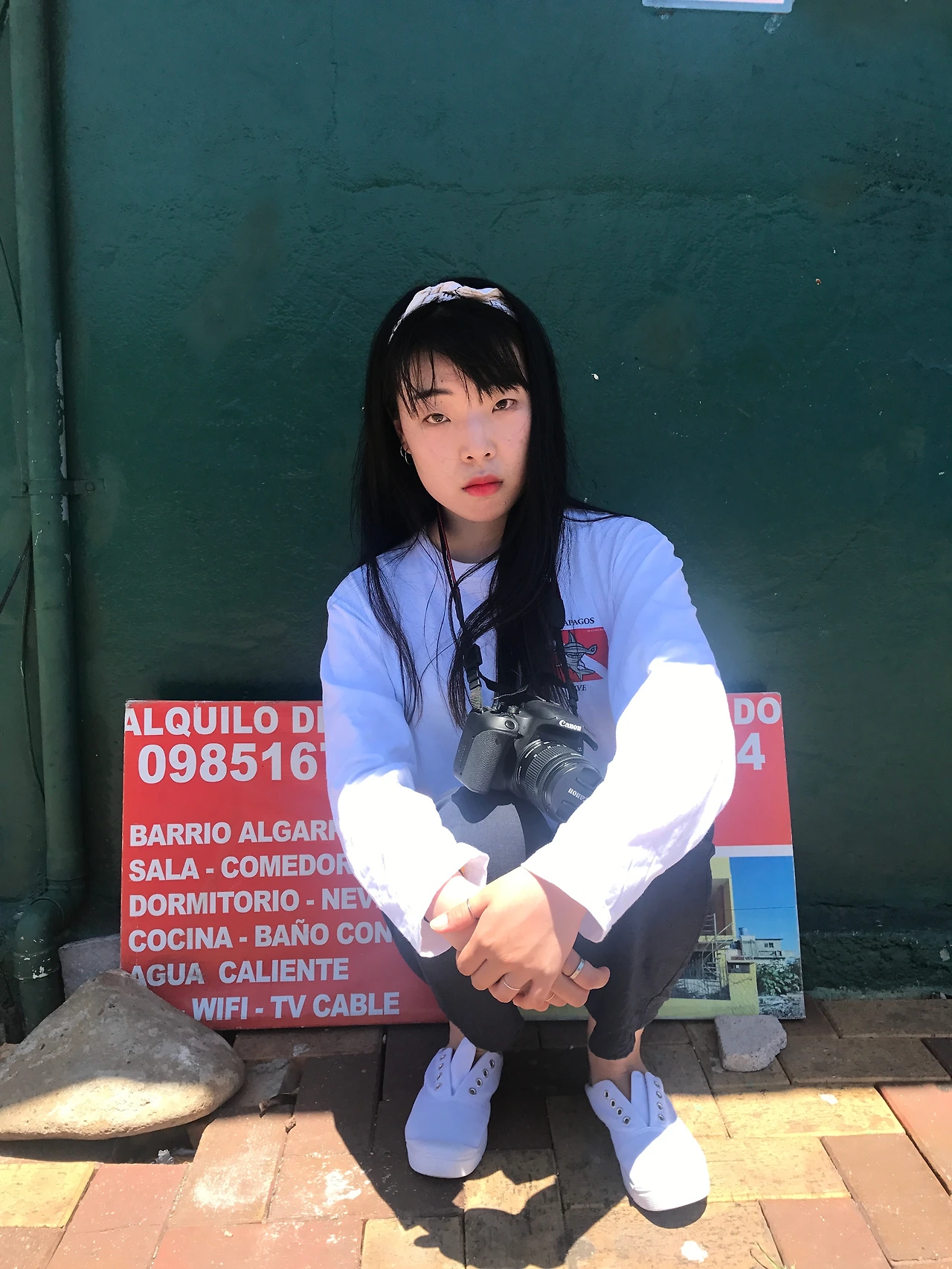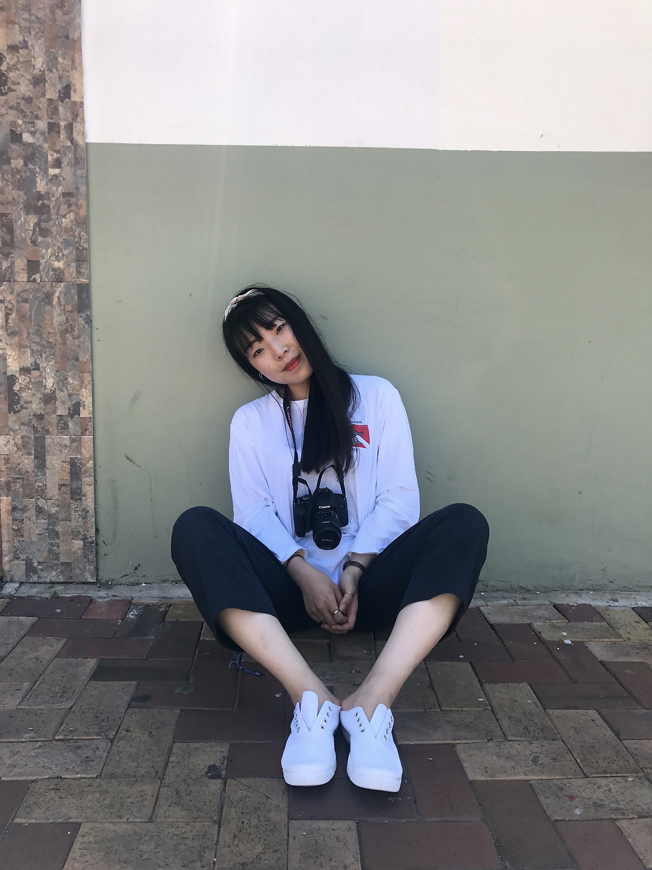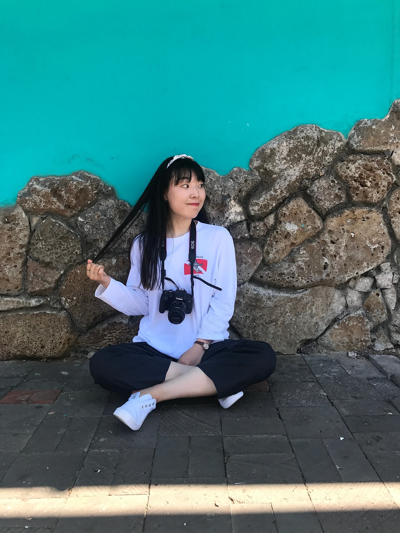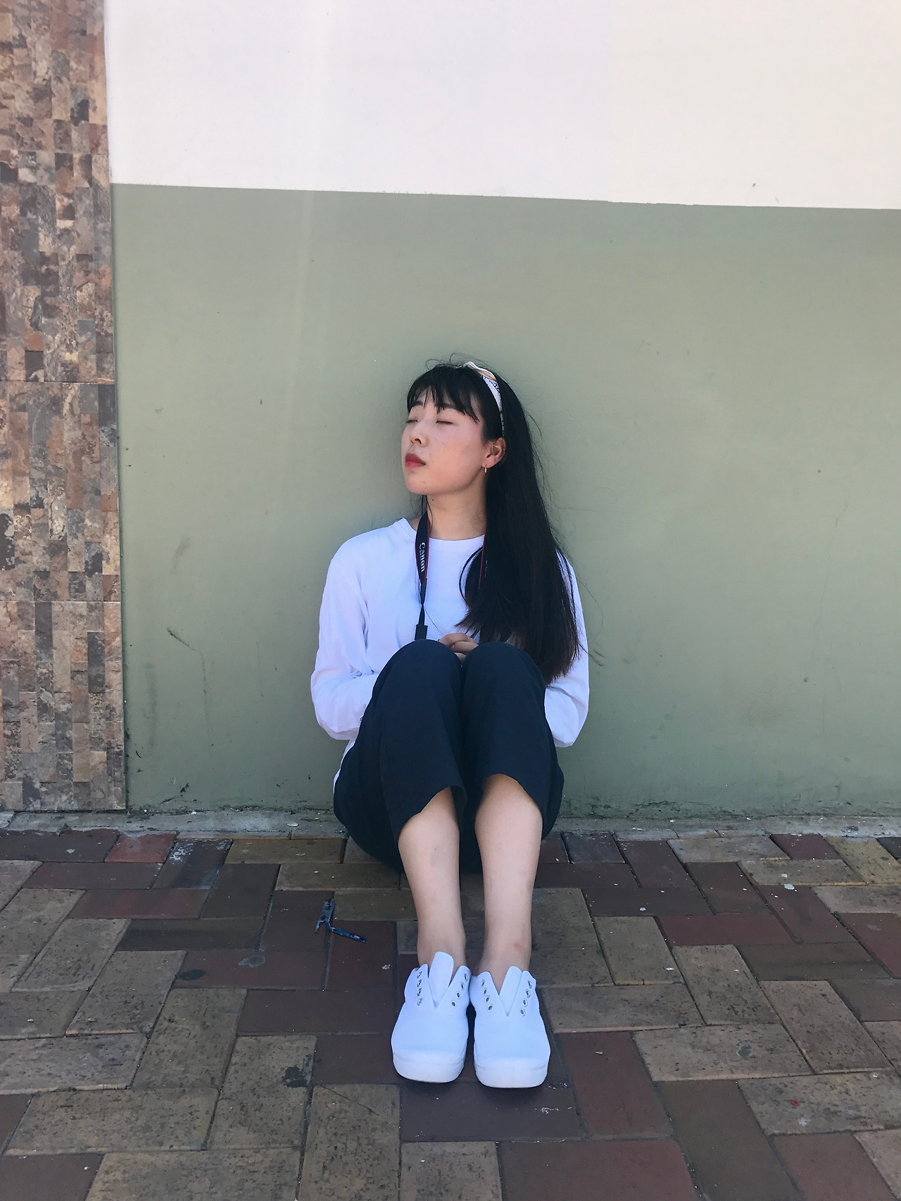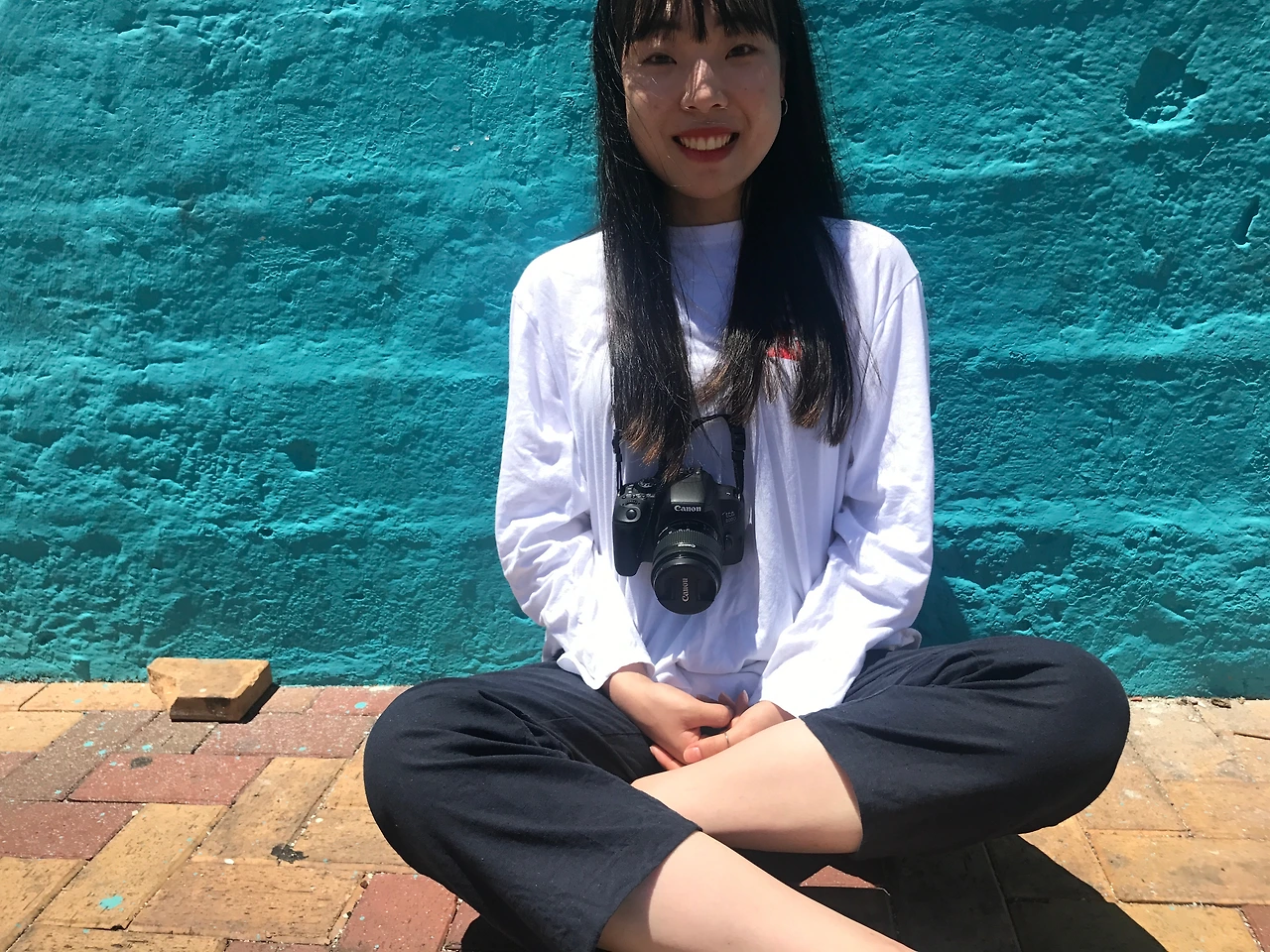 대체적으로 쨍한 색감의 벽 앞에서 얼굴빛이 살아났다.