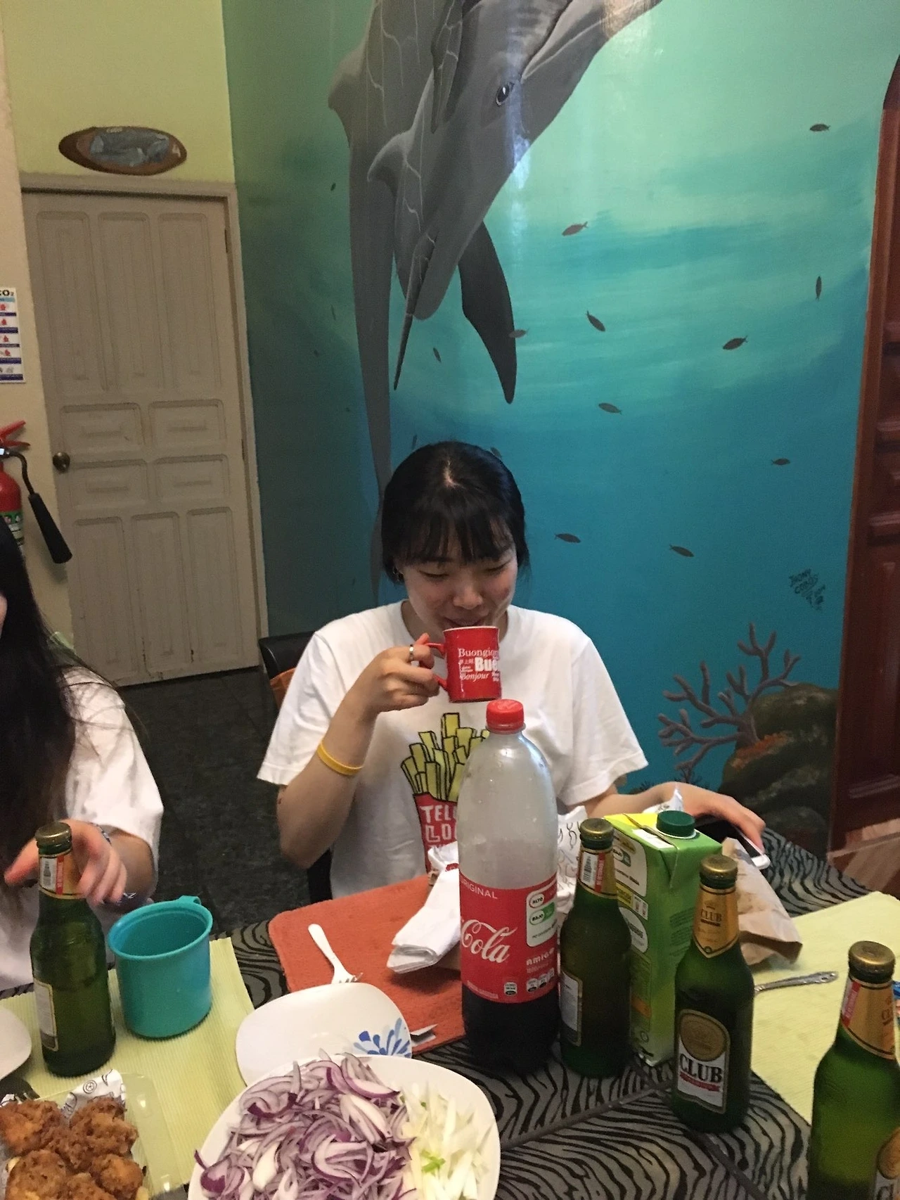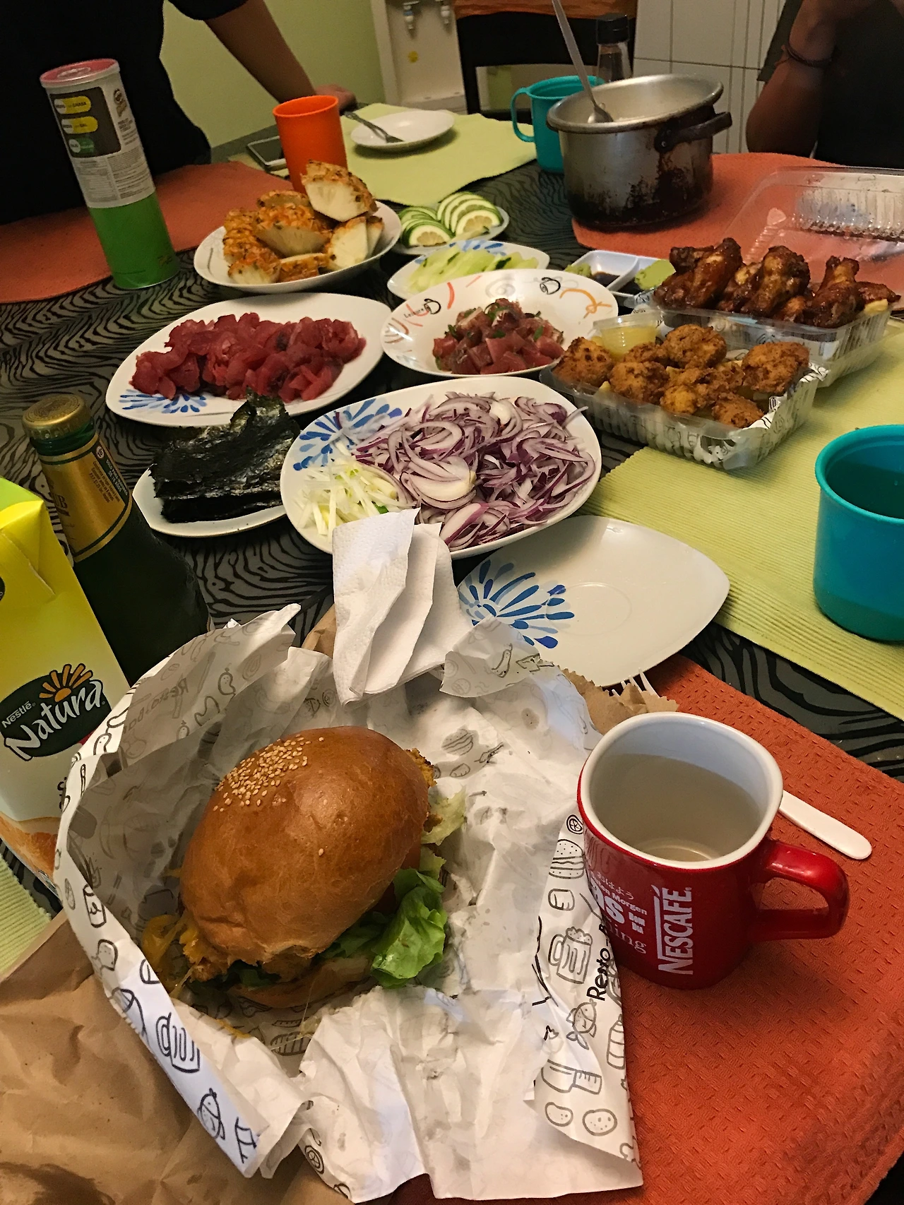 용욱오빠가 차린 참치회, 언니들이 사온 오렌지주스랑 크리스버거