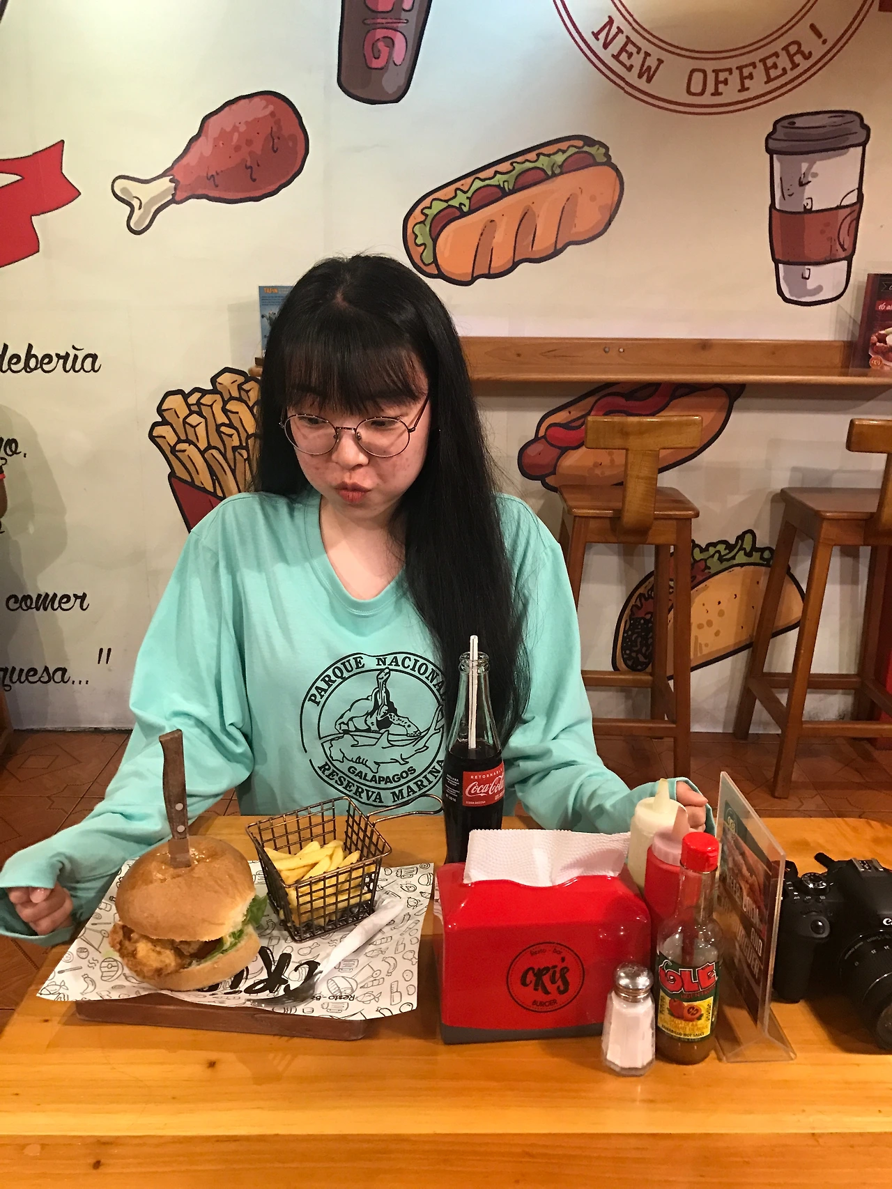 저녁 먹으러 크리스버거 갔다가 언니들 옆에 살포시 남겨둔 나의 발자취