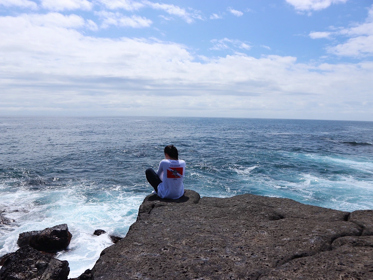 갈라파고스 셋째날. 키커락 투어 가는 길에 물감 같은 바다가 신기해서 찍은 사진.