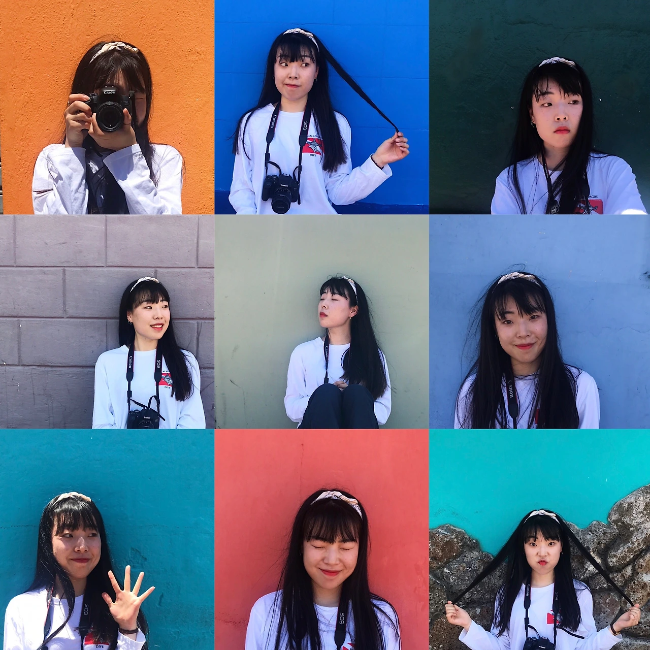 마을에 도착했을 때부터 알록달록 귀엽다고 생각했었으니까 마지막 날은 동네를 돌아다니면서 콜라주를 만들 수 있도록 여러 가지 색 벽 앞에서 내 사진을 찍기로 했다. 삼각대를 세워놓고 벽 앞에 철퍼덕 앉아서 열심히 사진을 찍었다. 나는 기본적으로 무표정을 장착하고 사는 타입이라 최대한 다양한 표정을 지어보려니 영 어색하기만 했다. 동네 사람들의 관심을 받으면서 겹치지 않는 색깔의 벽을 찾아 열심히 돌아다녔다. 웃어도 보고, 무표정으로 렌즈를 응시하기도 하고, 카메라를 들어도 보면서 애썼다. 이후로 나는 알록달록한 동네에 가면 늘 그런 사진을 수집하는 습관이 생겼다. 나는 그걸 내 멋대로 "알록달록 컬러링북"이라 칭한다. 온 동네를 돌면서 열심히 사진을 찍고 마지막은 벽화가 화려한 우리 숙소 앞에서도 찍었다. 내내 나를 좋아하던 숙소 아저씨는 나한테 그 사진을 보내달라고 했다. 아주 보고 싶을 거라고 말하면서. 투닥대다 정이 든 모양이다.