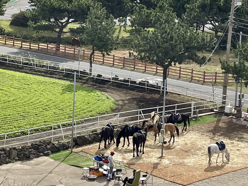 새무리들 그리고 손님을 기다리는 말체험장의 말들,,,,