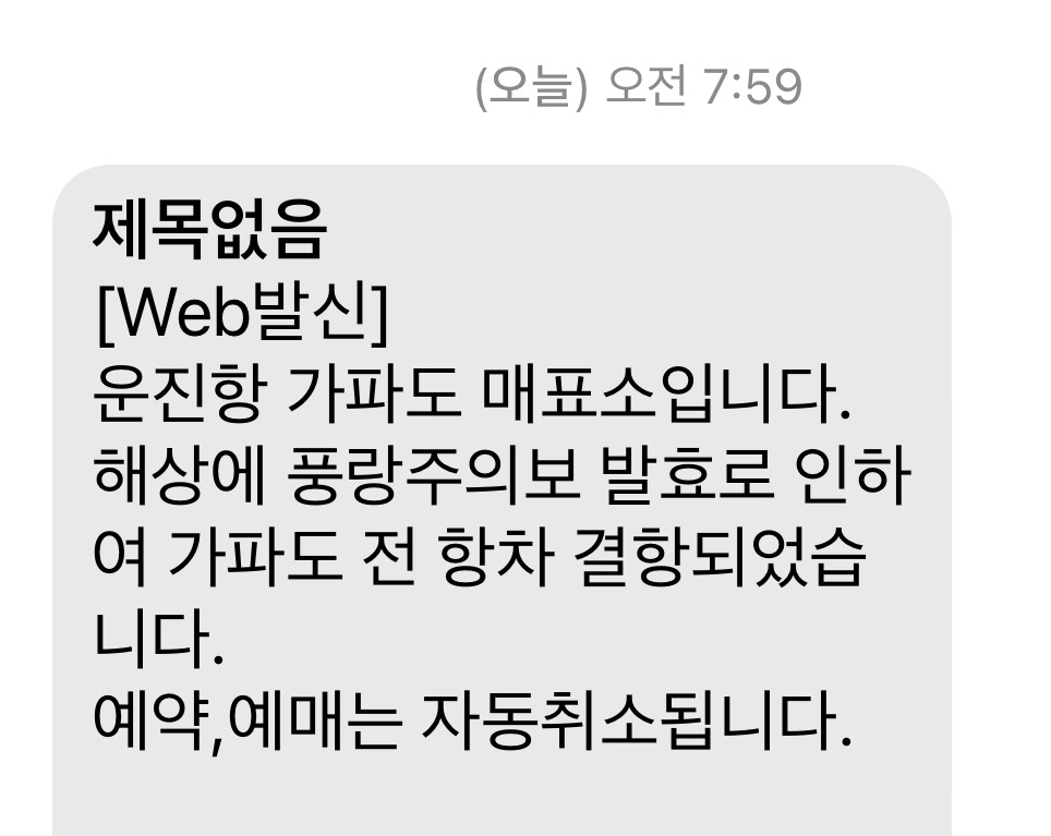 가파도 청보리밭 일정이 풍랑주의보로 결항되어 취소되었다.