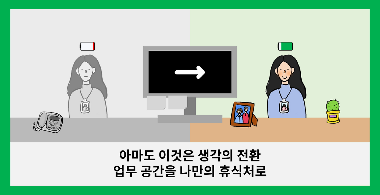 아마도 이것은 생각의 전환. 업무 공간을 나만의 휴식처로