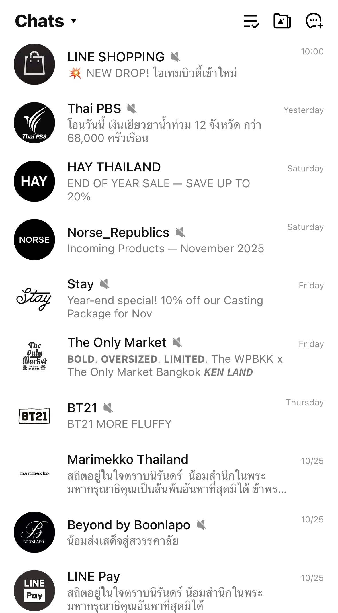 그리고 태국의 모든 브랜드의 공식 채널은 흑백으로 바뀌었다. 페북, 인스타, 라인 등등 채널의 모든 프로필 사진은 흑백이 되었고 서로서로 조심조심하는 분위기가 지속되고 있다. 자극적인 타이틀과 시각물들을 최대한 줄이고 있는데 이런 디렉션은 태국에서 처음이라 어색한 마음이 내내 드는 게 사실이다. 검은색 세상에 알록달록한 색상이 조금이라도 묻을까 봐 주변을 계속 살피게 된다.