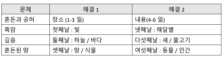 1) 창조의 순서가 구조적으로 조화로운데다, 인간의 창조가 가장 마지막입니다.