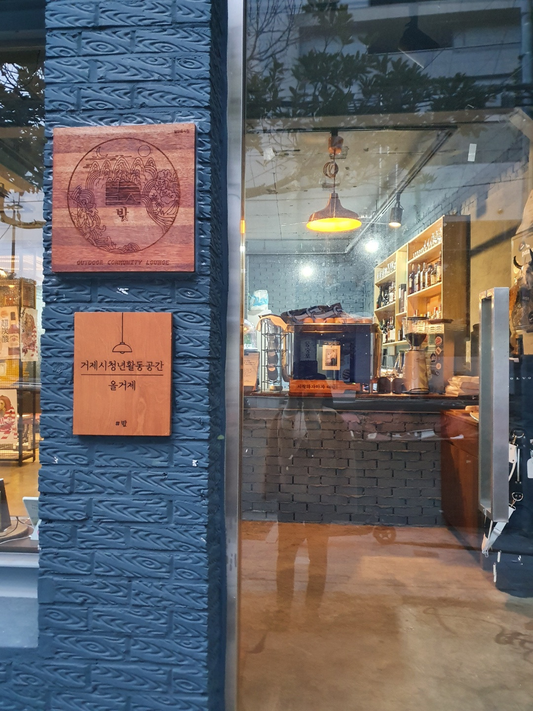 기존의 밗은 도시재생회사인 공유를 위한 창조에서 운영하는 아웃도어 라운지였습니다. 캠핑, 트래킹 등 아웃도어 활동을 좋아하는 많은 분들이 방문해 쉬고, 커피도 한 잔 하는 그런 공간이었죠. 캠핑 용품으로 가득찬 인테리어는 괜시리 한 번 나가고 싶어지는 분위기를 자아내기도 했습니다.