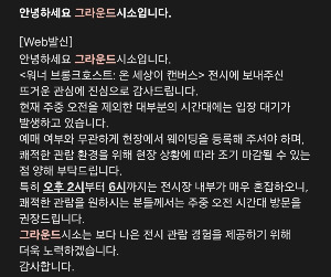 이번 전시가 얼마나 인기가 많은지, 나는 관람 전 단체 문자까지 받았다.
