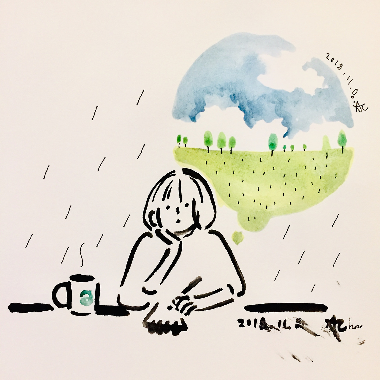 비가 온다. 약 사년 반의 직장생활. 생계 말고는 다른 의미를 찾지 못한 이 생활의 우울 말고, 결국은 이기적일 수밖에 없는 내 머릿속 생각 말고, 나로부터 나오는 게 아니라 어디로부턴가 공급받는 “진짜 아름다움”을 표현하고 싶어 무작정 시작한 그림과 글.