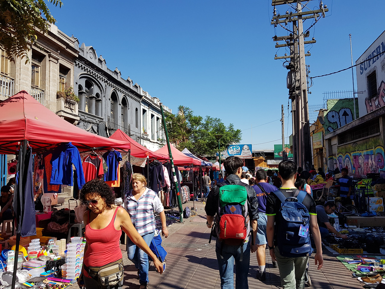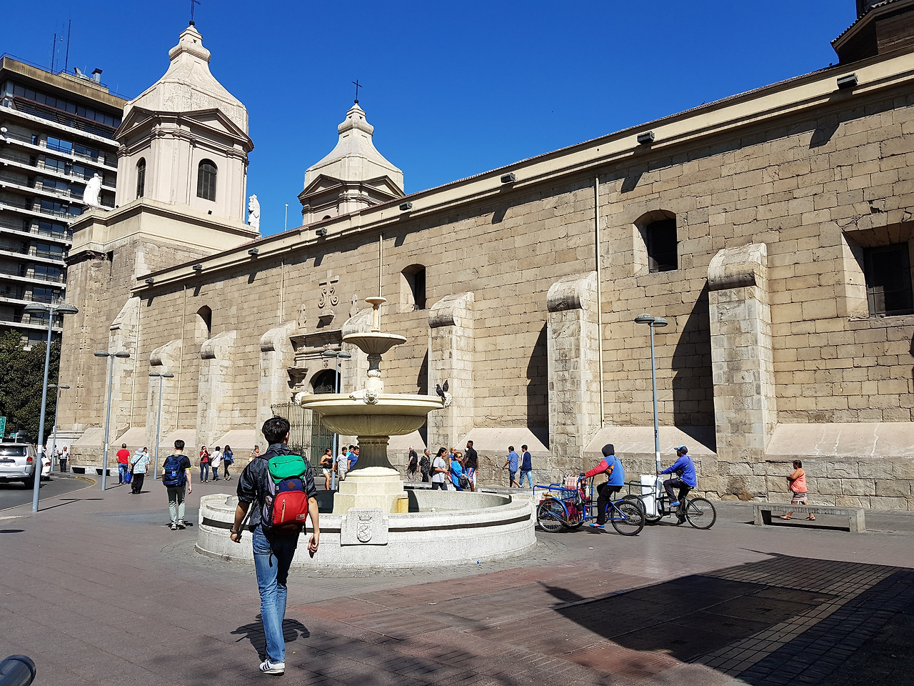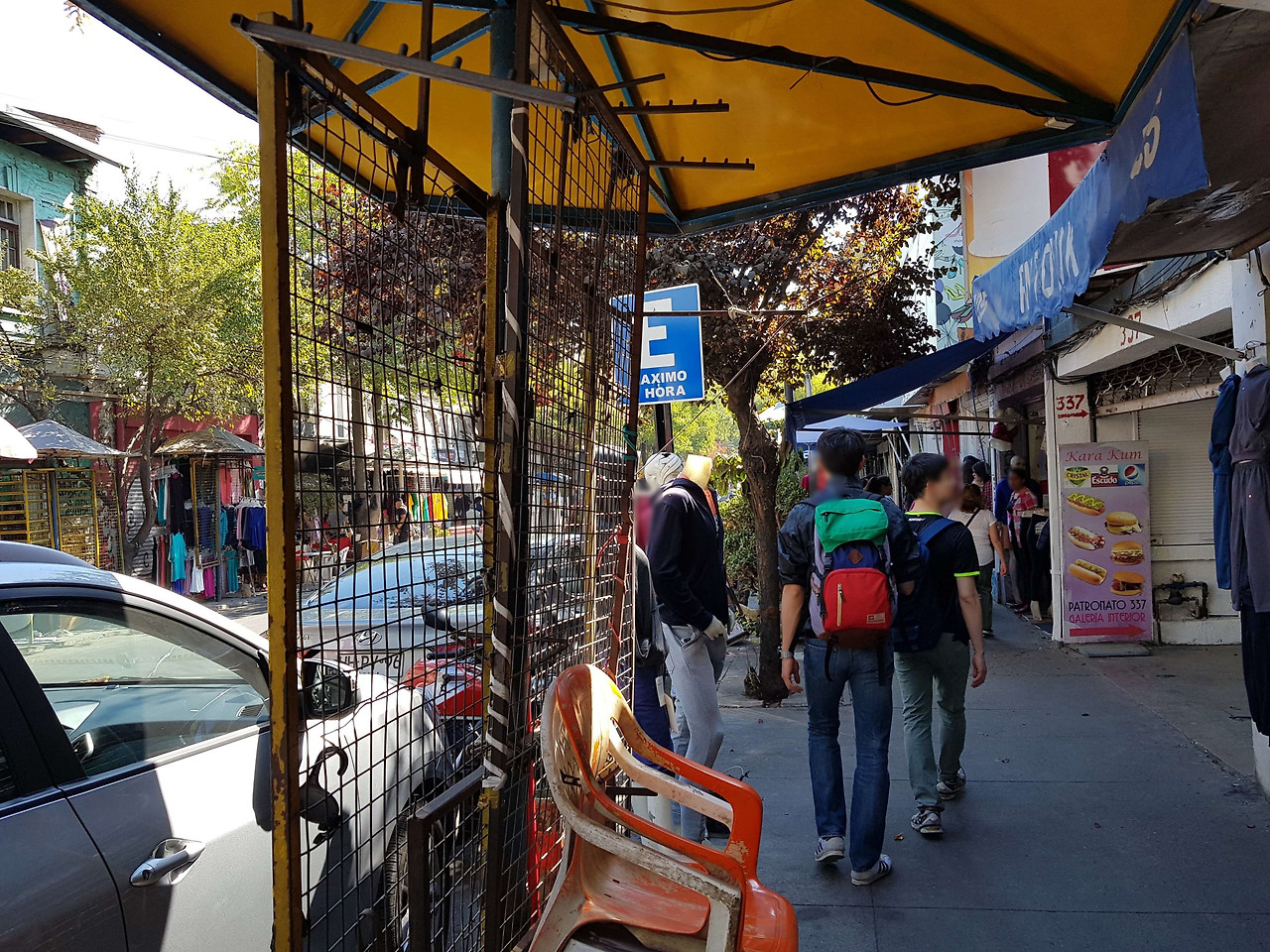 조금 걷다 보니 길이 커지고 사람과 차가 많아졌다. 우리는 본능적으로 중심부로 발걸음을 들어섰다는 것을 알게 되었다. 산티아고도 다른 도시와 다르지 않게, 각종 먹거리들이 길가는 사람을 유혹하고 있었다. 배가 고파진 우리는 핫도그를 하나 사 먹어 볼까 고민하다가, 칠레에서의 첫 끼는 조금 참아서 배가 고프더라도 제대로 남미스러운 음식을 먹어보자는데 의견을 모아 애써 못 본 체 간식을 파는 가게들을 지나쳤다. 그래도 콧구멍으로 쳐들어오는 핫도그 굽는 달콤한 냄새, 소스의 자극적인 냄새, 맛있다고 가게 주인들이 소리치는 소리 등은 모른 채 하기 어려울 정도였다.