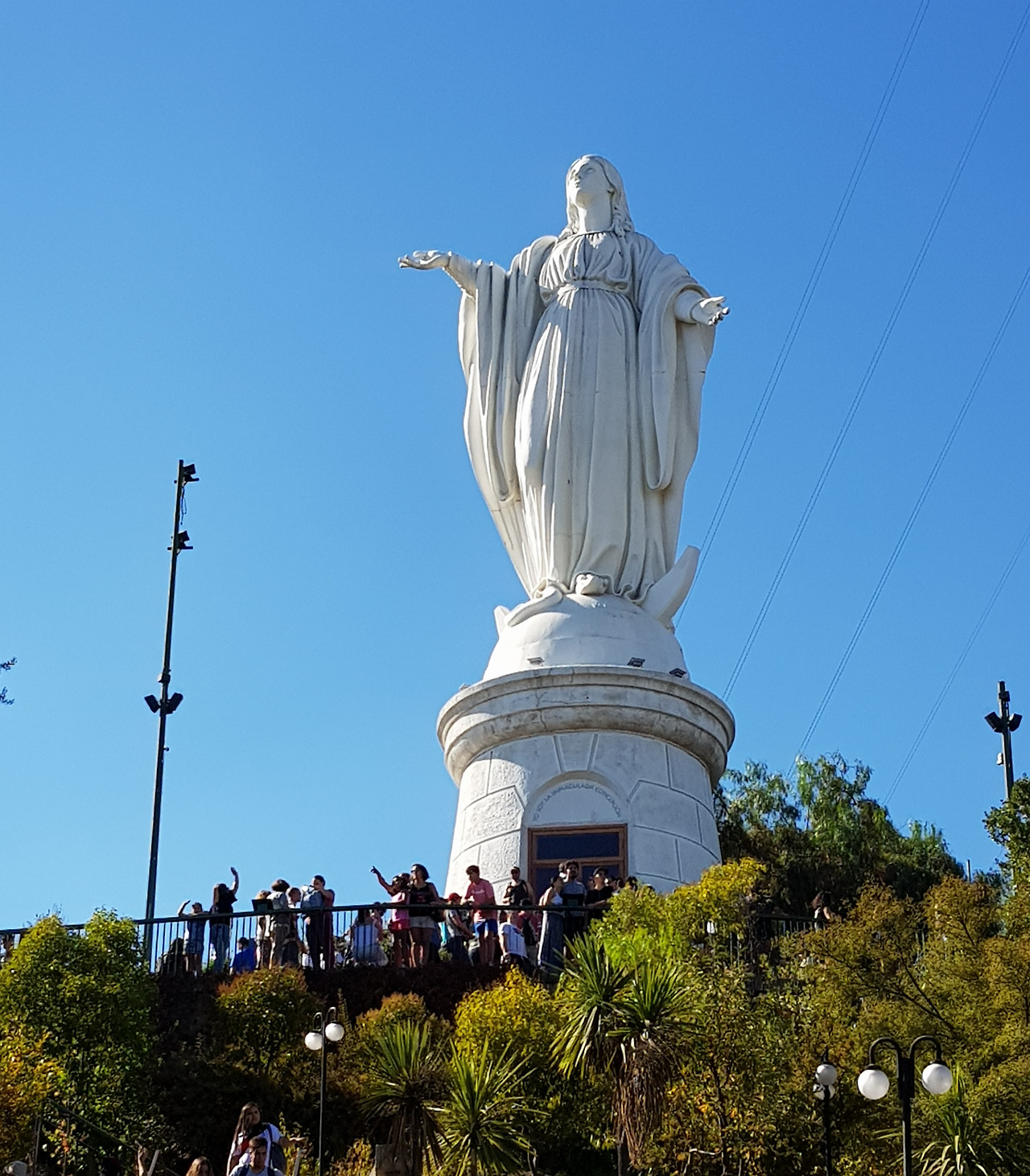마리아상이 시내를 내려다본다. 마치 마리아가 시내의 모든 칠레 사람들을 보호하는 것과 같은 자세를 취하고 있다. 반대로 아래에서 마리아를 바라보면, 성모가 우리를 안아주는 느낌이 드는 것이다. 정말 기가 막힌 조형물이었다. 없던 신앙심이 생길 것만 같았다.
