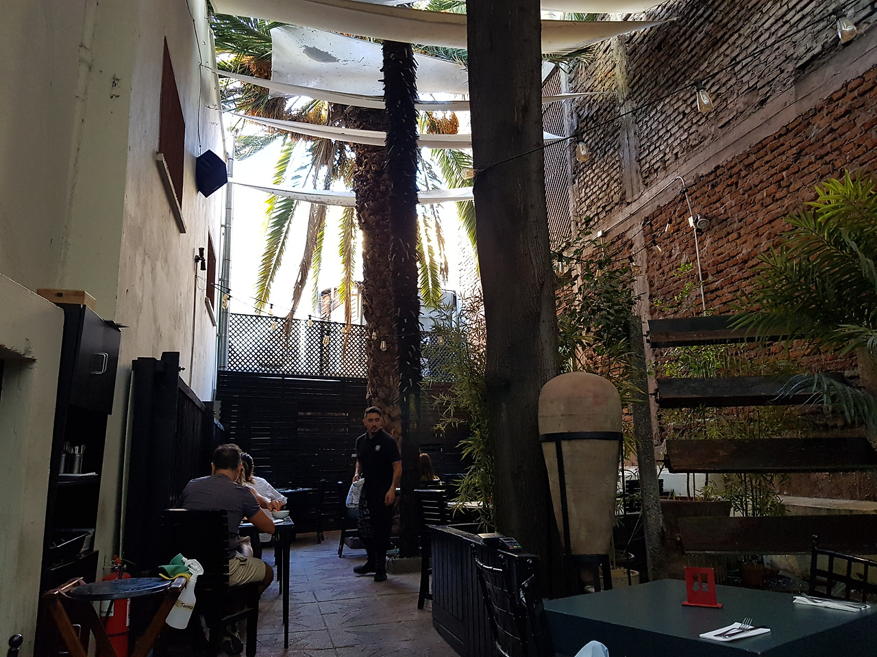 마치 쿠바에서 체계바라 혁명군의 붉은 별을 상징하는 것 같은 디자인의 입구가 우리를 맞아줬다. 저 입구를 지나쳐 들어가니 마치 건물 사이에 지붕을 쌓고 그 아래, 그러니까 야외인 듯 실내인 듯하는 공간이 레스토랑이었다. 매우 감각적인 공간이었다.