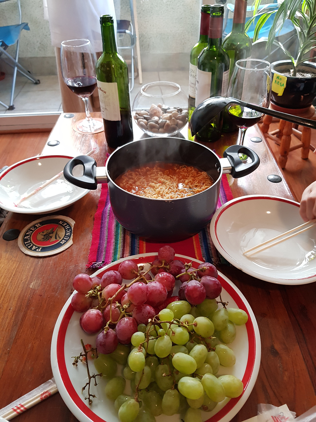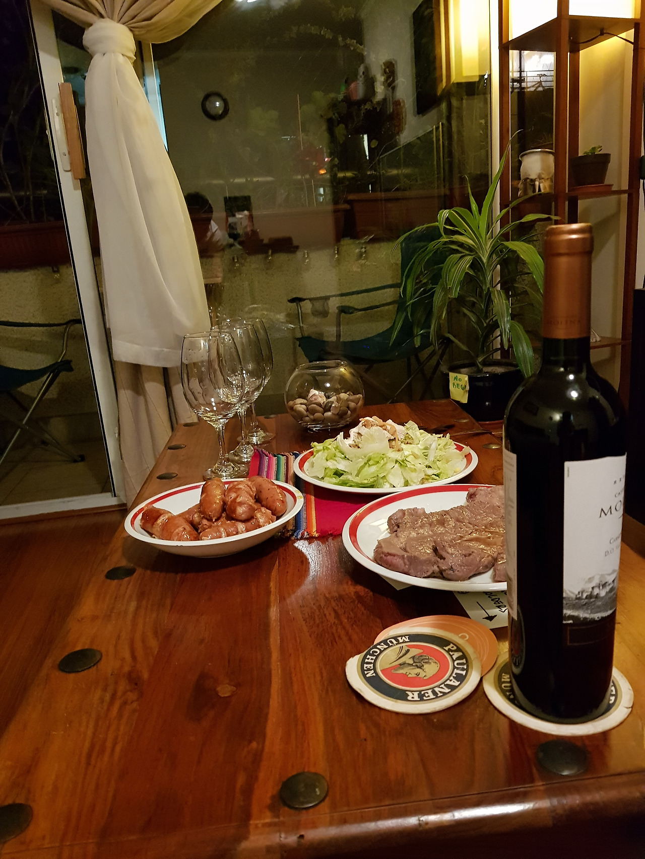 파타고니아에서부터 먼 길을 비행기로 이동해서 굉장히 피곤했다. 우리는 들어오기 전 근처에 있는 마트에서 저녁으로 먹을 소고기와 야채, 그리고 와인을 몇 병 샀다. 질 좋은 고기와 와인이 상당히 저렴한 나라였다. 씻지도 않고 허기를 달래기 위해 허겁지겁 저녁을 먹었다. 와인 한 병을 셋이 다 비우기도 전에 식사가 끝났다. 배고픔이 가시니 안정이 찾아왔다. 참 편안한 숙소였다.