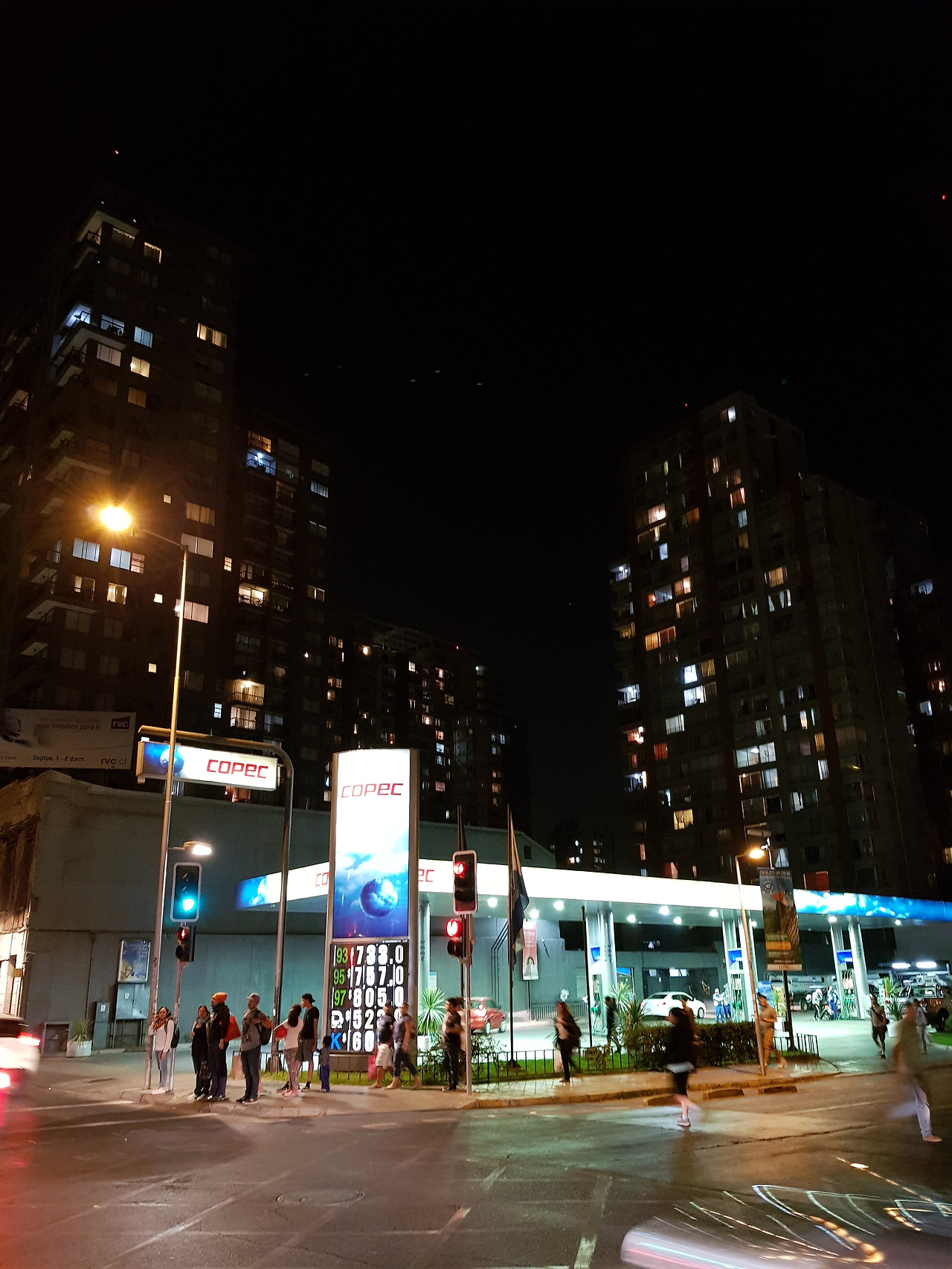 지상으로 나오니 큰 주유소가 하나 보였다. 뒤에는 아파트들이 즐비했다. 층층마다 제각기 다른 색으로 밤을 밝히고 있었다. 어두운 방 중 하나가 우리가 이틀 동안 묵을, 칠레의 마지막 숙소였다.
