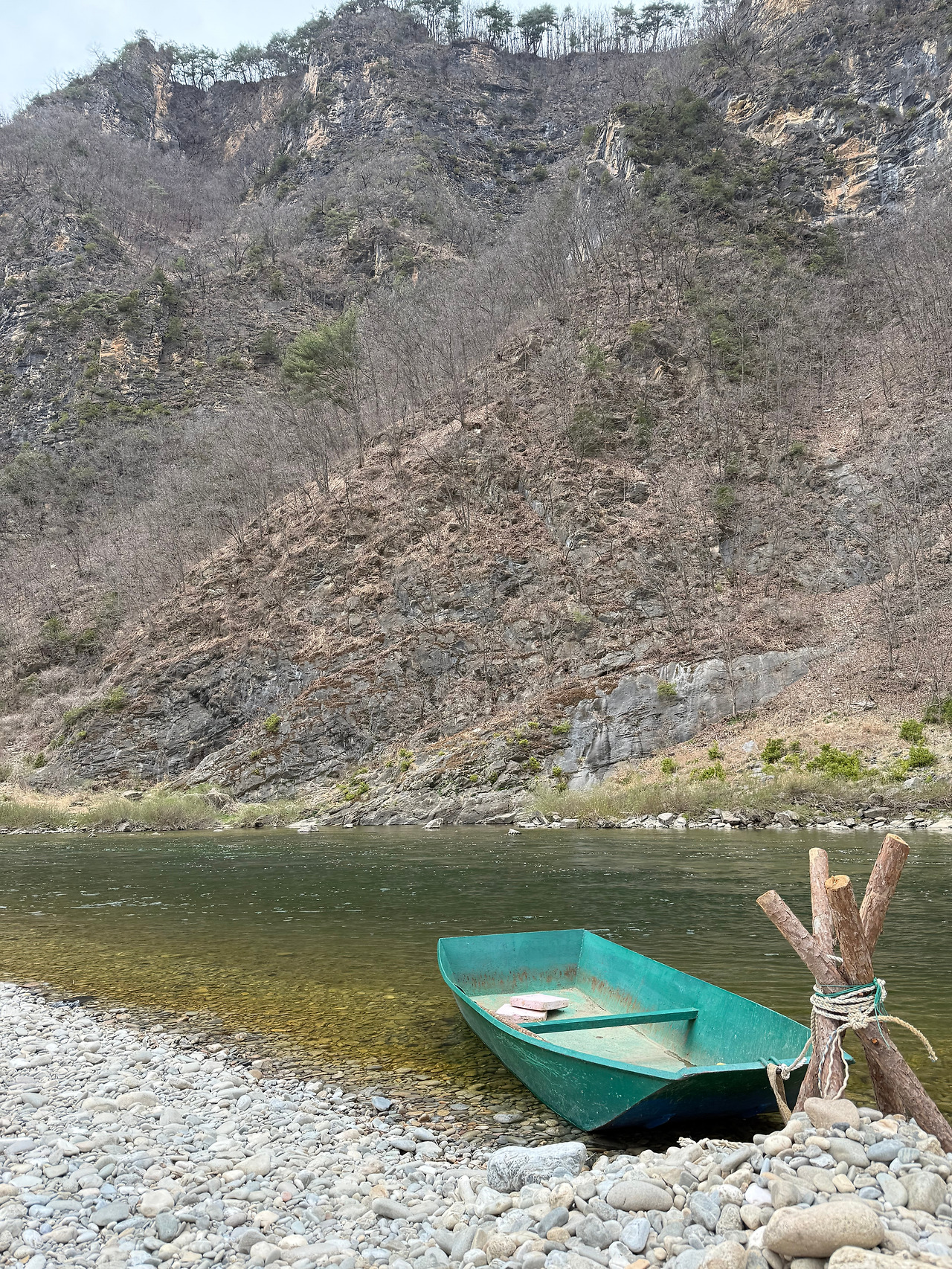 강가에 도착하니 작은 배 한 척이 나무 기둥에 밧줄로 묶여있었다. 작은 배는 물살을 따라 몸을 이리저리 뒤척였지만, 그 정도 힘으로는 제 몸을 묶어둔 밧줄을 풀기에는 역부족인 것처럼 보였다. 거북이 민박은 앞뒤로 높은 산맥이 솟아있고, 민박집에서 5분 정도 걸어 나오면 유유히 흐르는 동강이 있는 공간이었다.