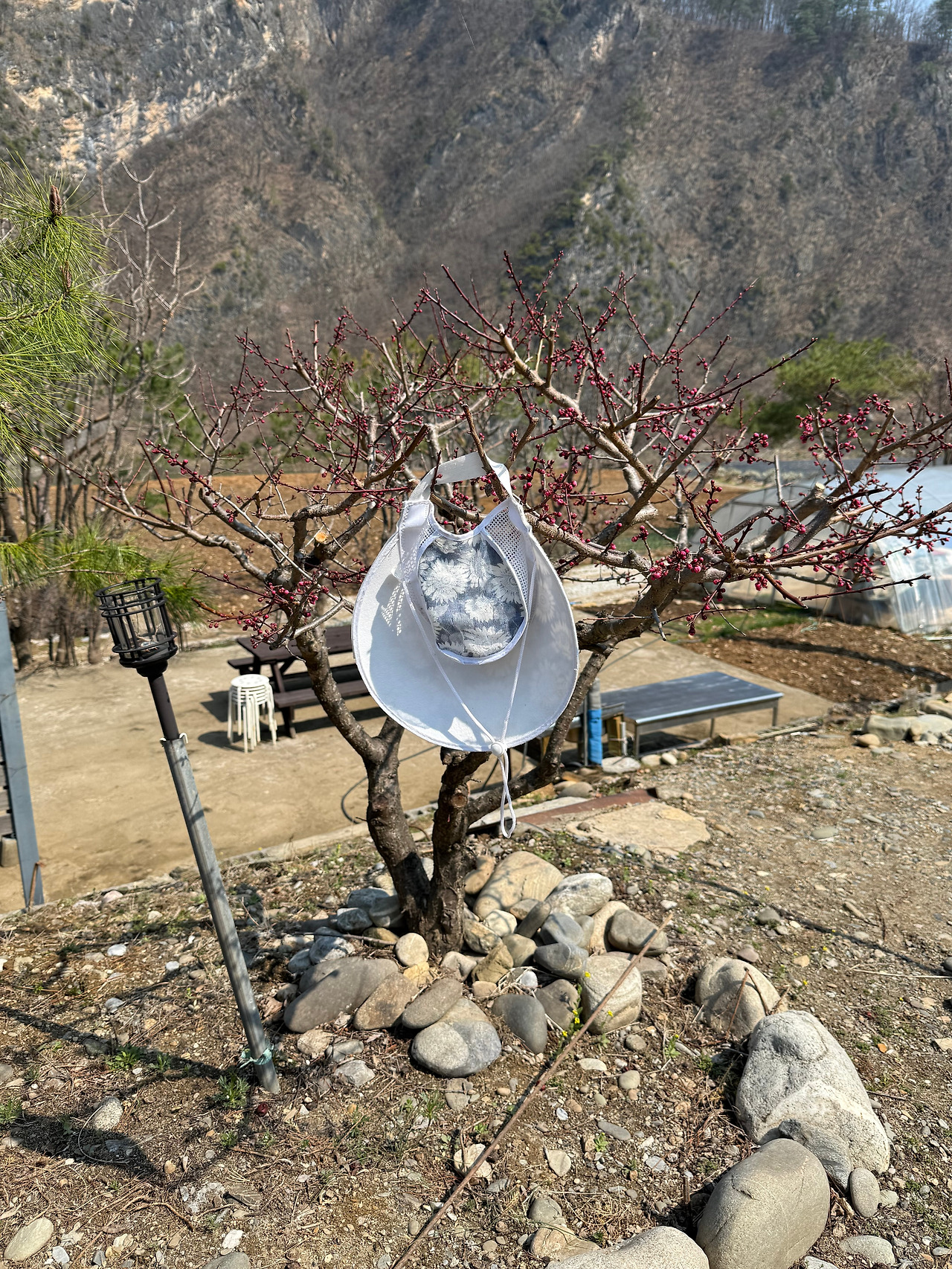 할머니의 말을 들으며 꽃나무들을 둘러보니, 여든이 넘는 할머니의 손이 닿는 나무의 앞쪽 편은 이미 깨끗했다. 나무 뒤쪽은 땅이 경사가 져서 따기 어려운 모양이었다.