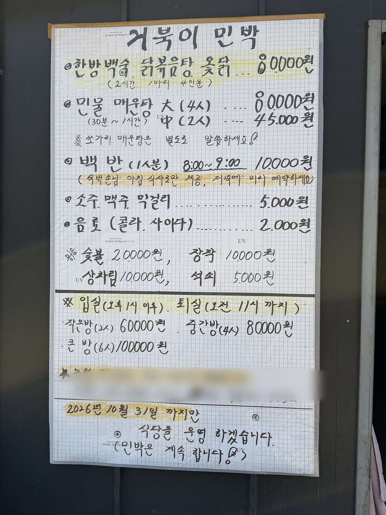 한 마리 3~4인분이라는 안내에 걸맞게, 백숙은 양이 무척 많아 보였다. “국물 색깔이 대단한데요?”라는 말에 “12개의 약재를 넣었어요. 보약이에요.”라고 웃으며 대답하는 사장님의 얼굴에서 자신감이 느껴졌다. 거북이민박은 오며 가며 산길에 한 시간을 쏟더라도, 오로지 백숙을 먹기 위한 목적으로 손님들이 종종 찾는 곳이었다.
