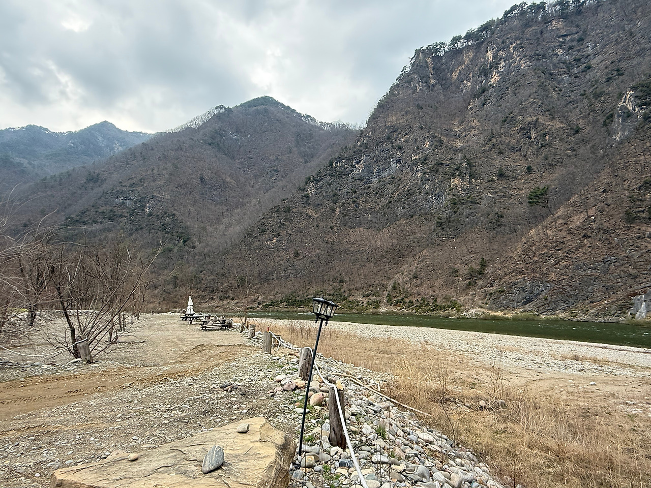 숙소로 돌아와 강가로 나갔다. 그저 잠깐 나가서 얘기하다가, 추우면 방으로 들어와 저녁 전까지 낮잠이라도 잘 생각이었다. 오늘도 하늘은 빈틈없이 먹구름으로 가득했다. 저녁에 또 비소식이 있었다.